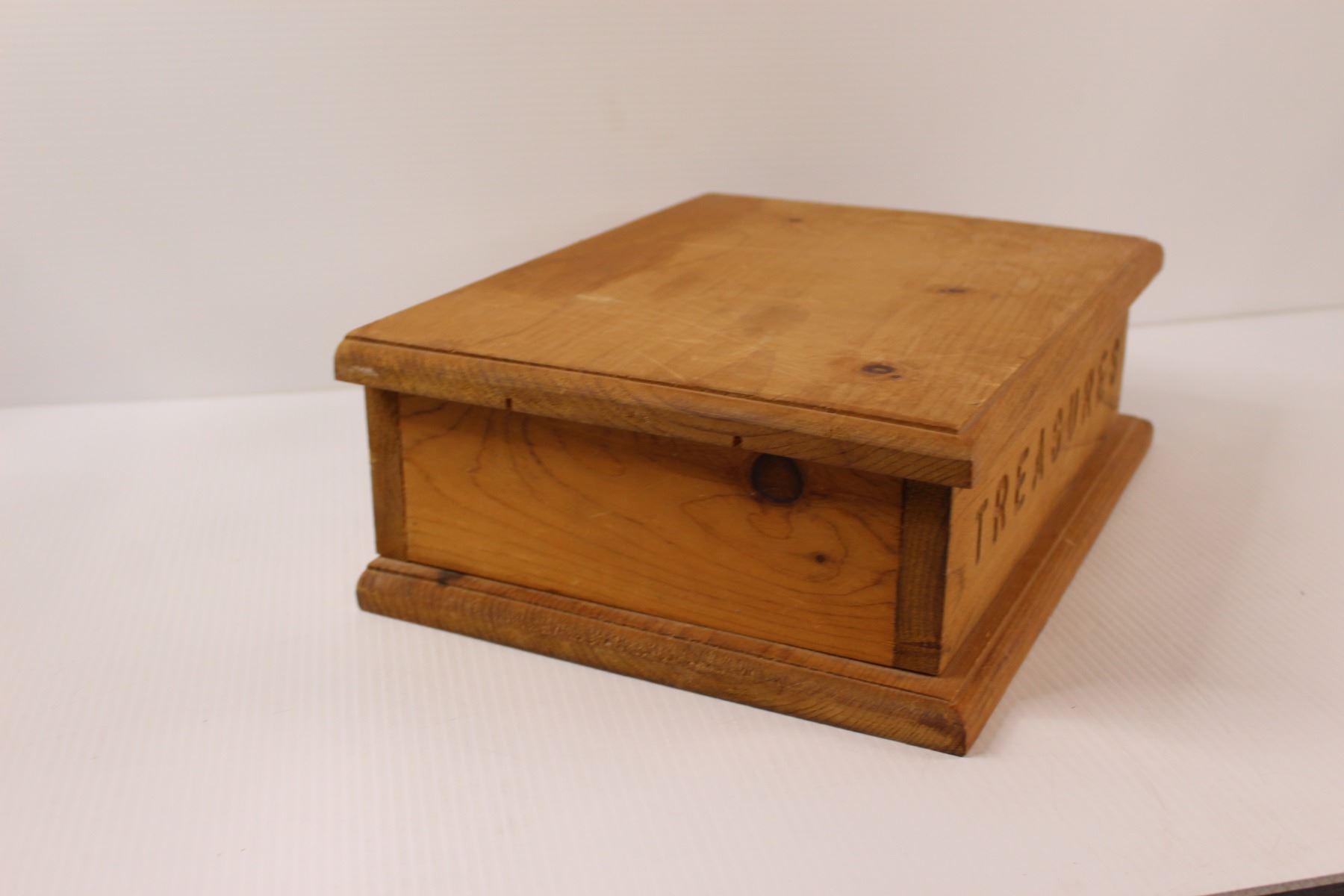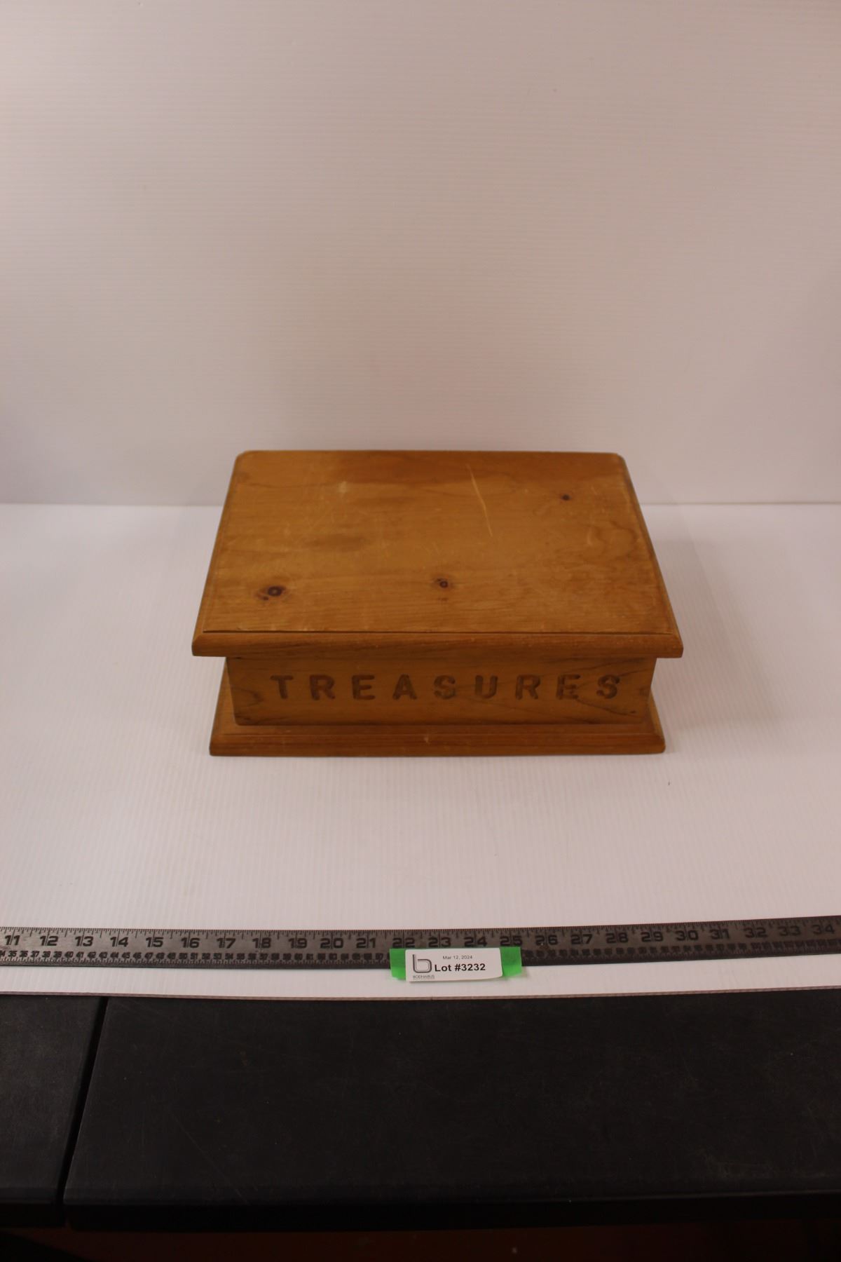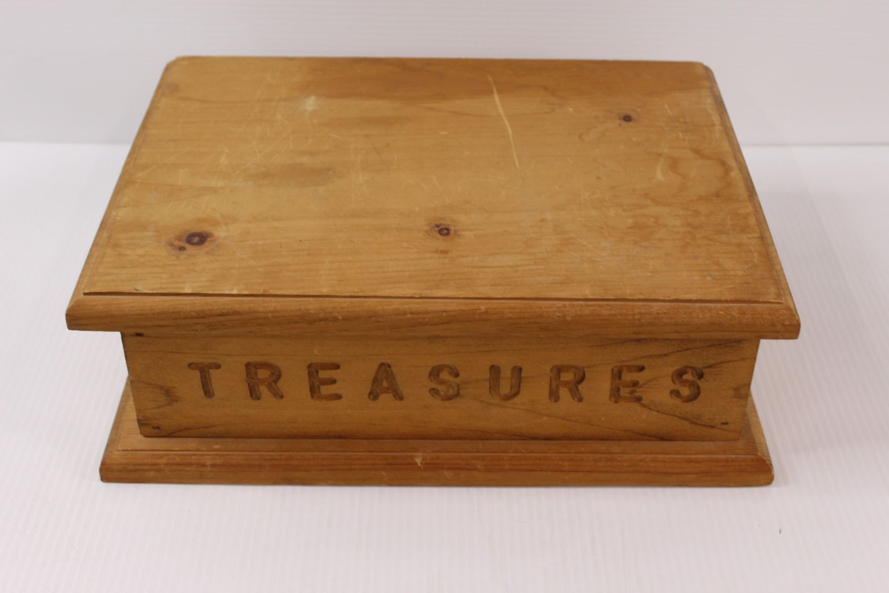 Large Cedar Wedding Box (15x11") w/ "Treasures" Carved on the Front. (For Collection of Wedding Gift Money & Envelopes)