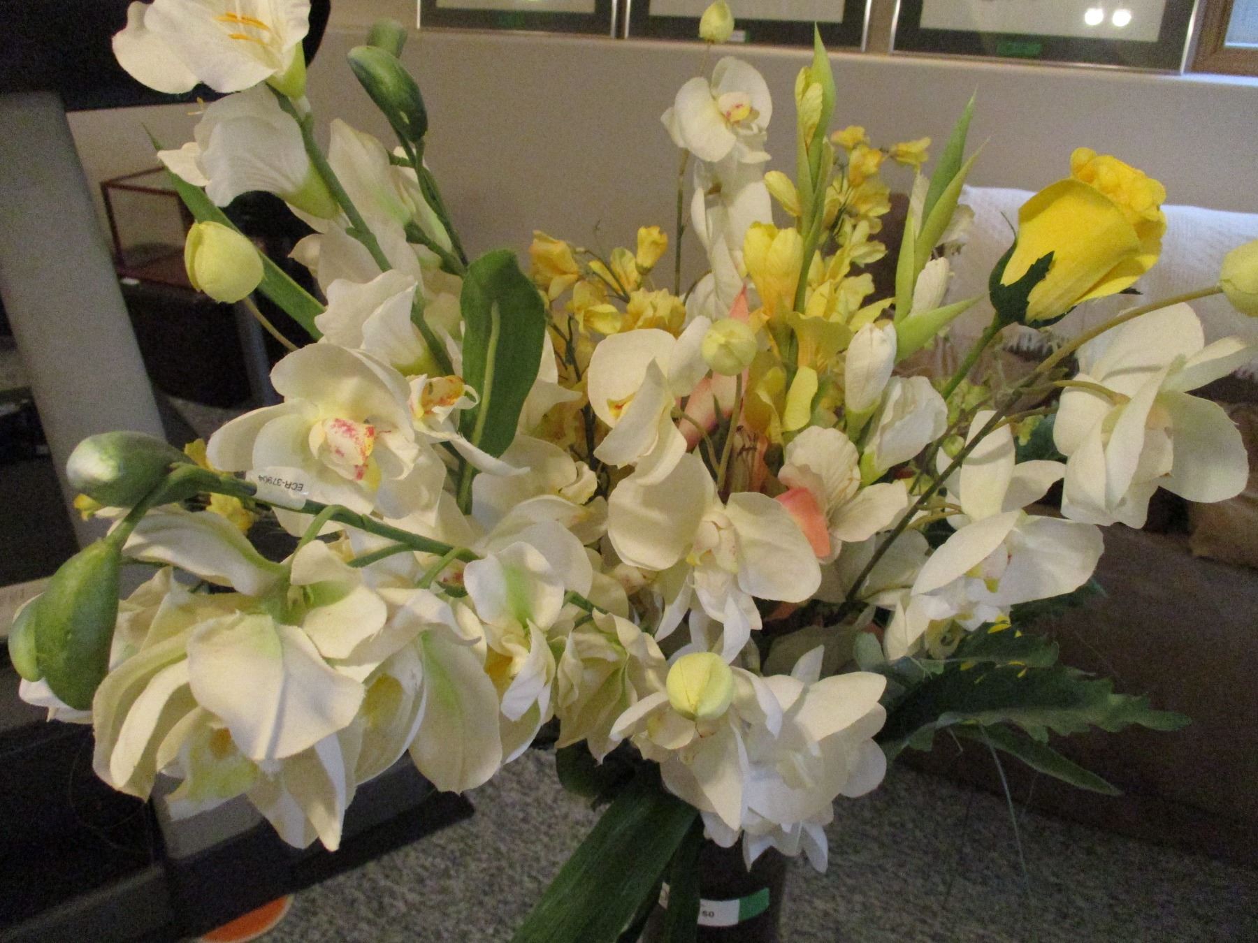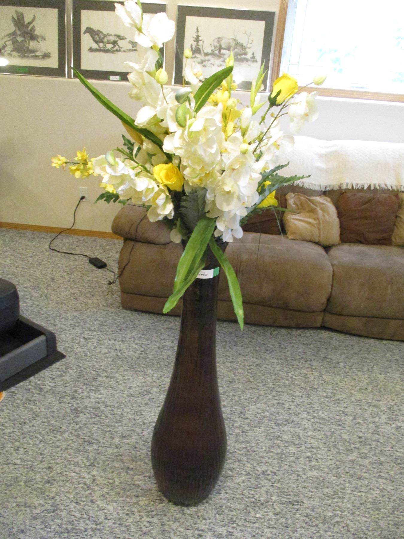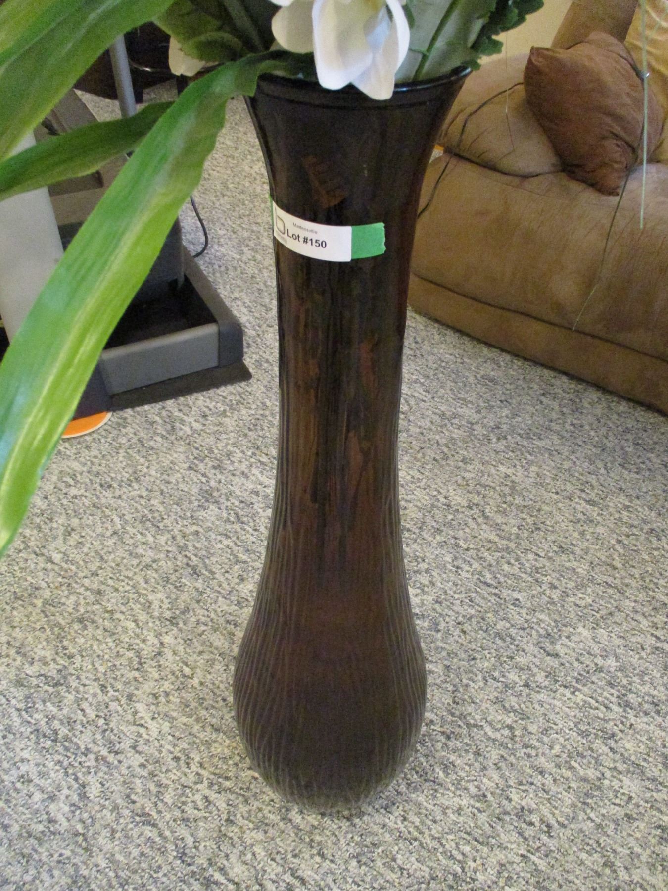 Large Glass 40" Tall Vase w/Artificial Flowers