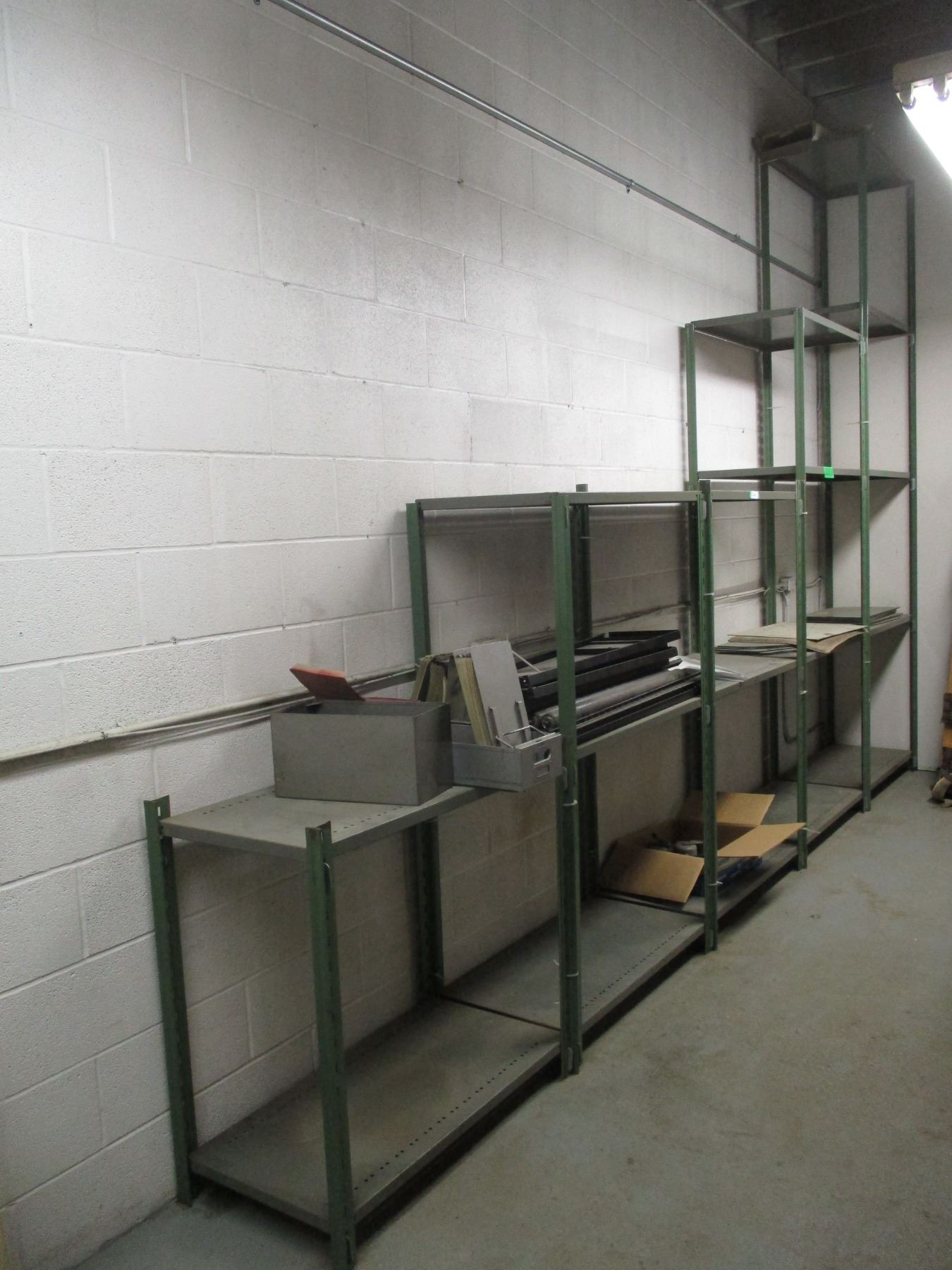 Large Long Metal Shelving Unit – 85” X 20” x 60 to 124” Tall With Misc. Content