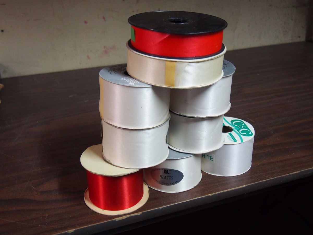 Large Lot Of Florists Ribbon (300 Yards Of 2 1/2 White, 100 Yards Of 1 1/2 White, 40 Yards Of 2 1/2 Red, 90 Yards Of 1 1/4 Red)