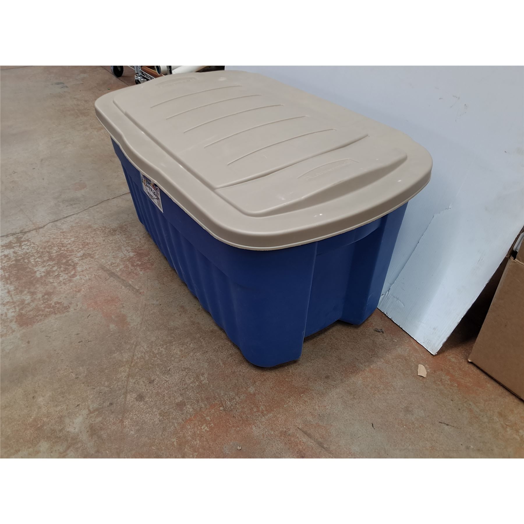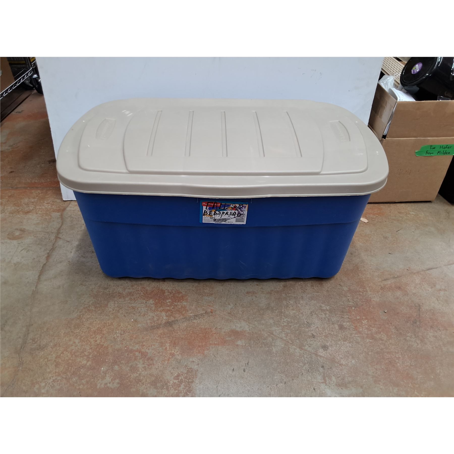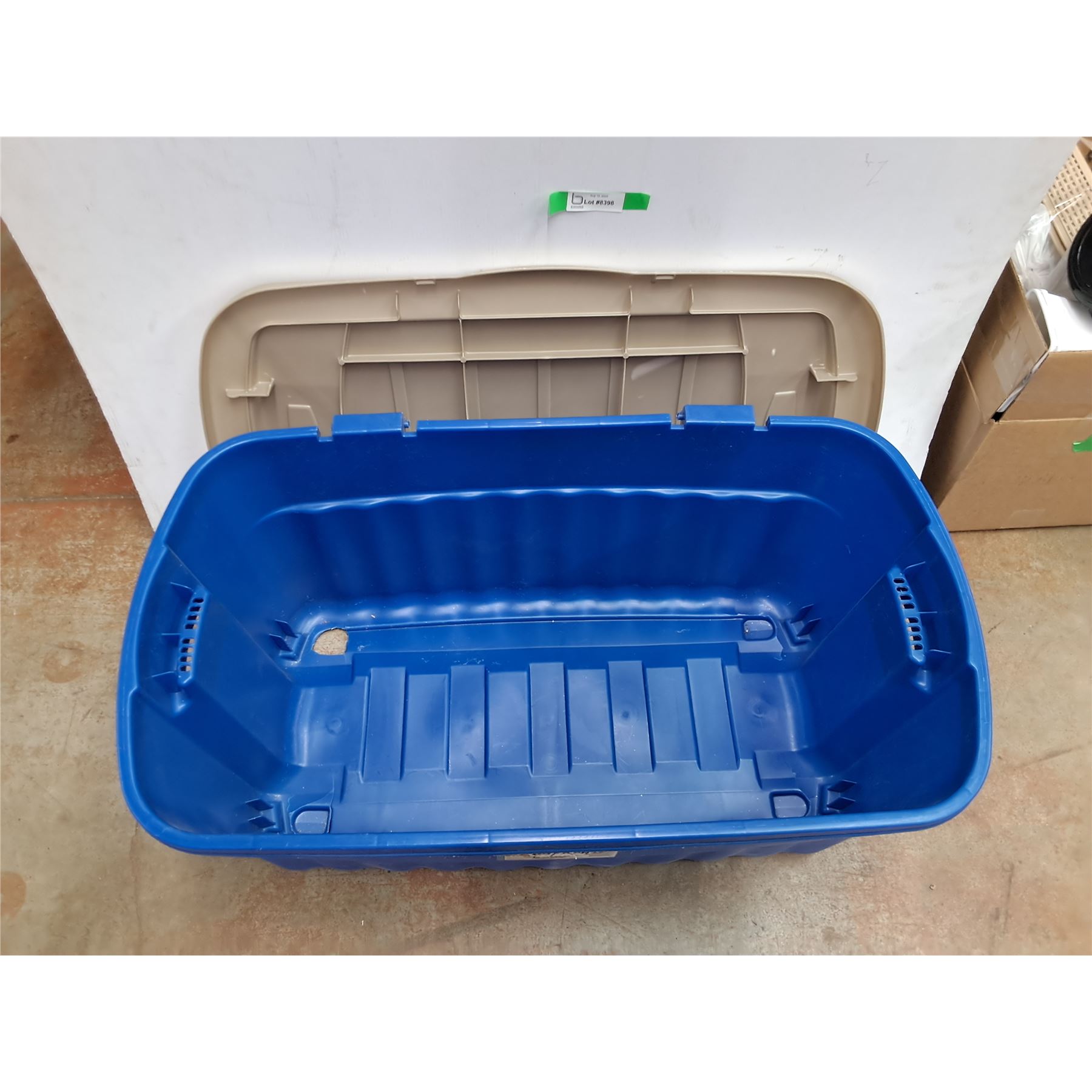 **Large Plastic Tote with Lid, Some Damage, 36" x 20" x 17", Cannot Ship