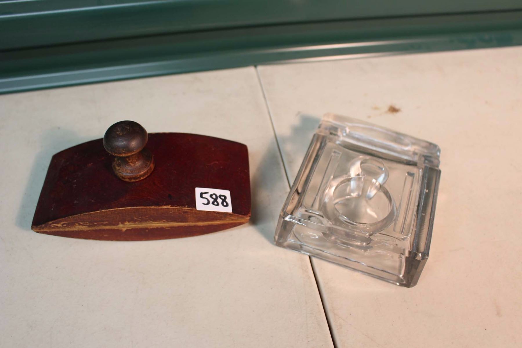 Late 1800s Wooden Ink Blotter & Glass Inkwell