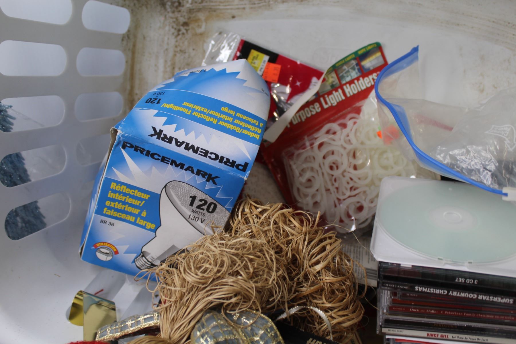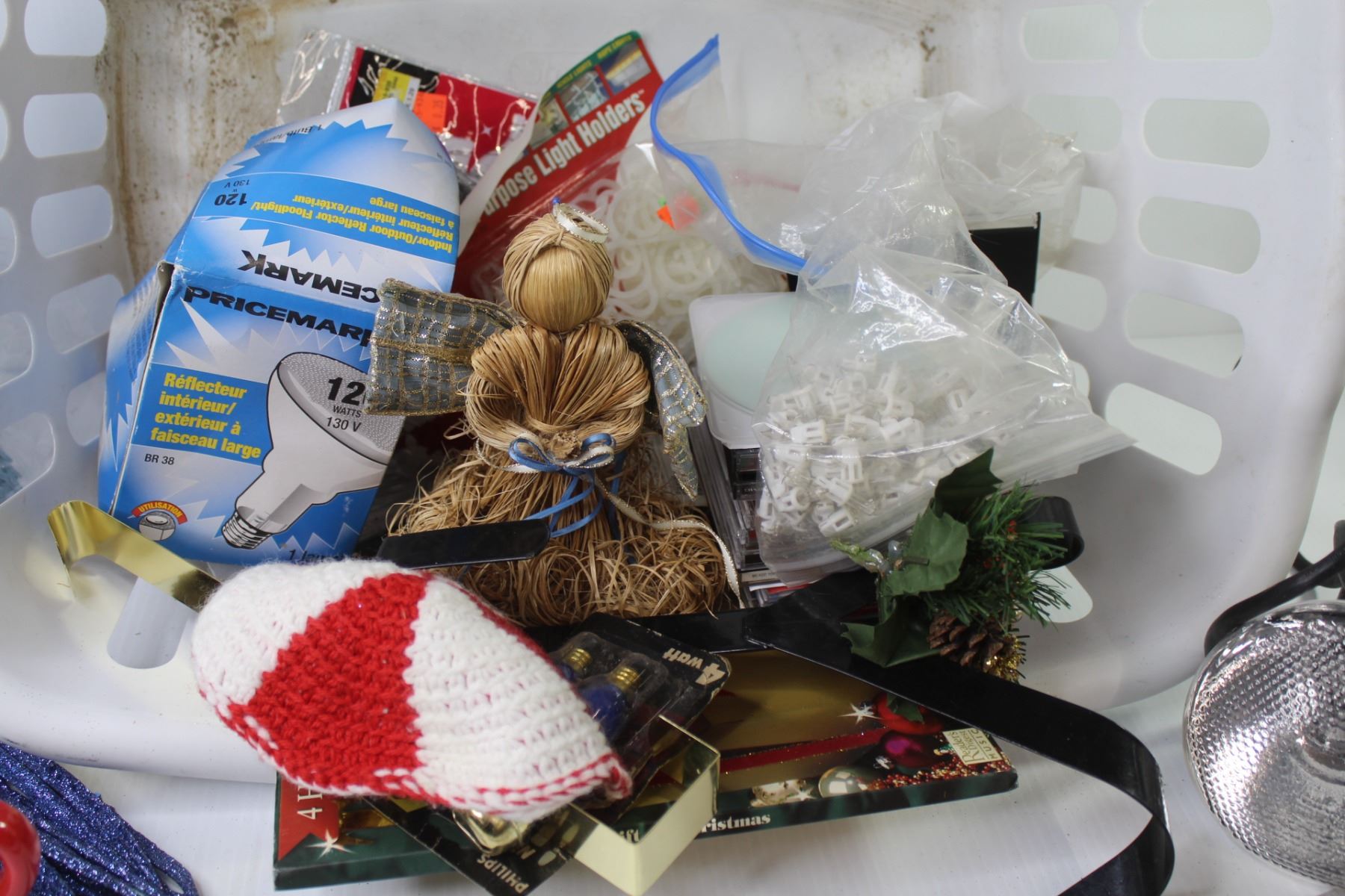 Laundry Basket, Floodlight, Christmas Decorations, Wreath Hangers, Christmas Lights, Hot Pads, Christmas CD's, etc.