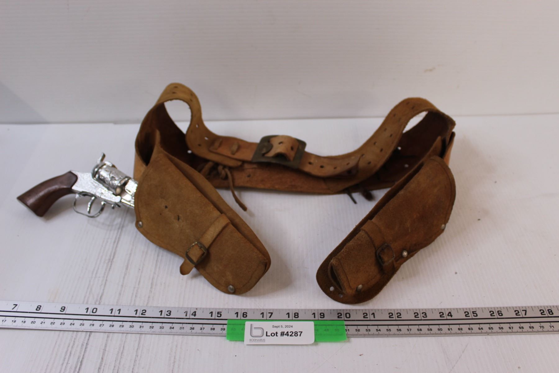 Leather Kids Holster Belt w/Toy Revolver Gun