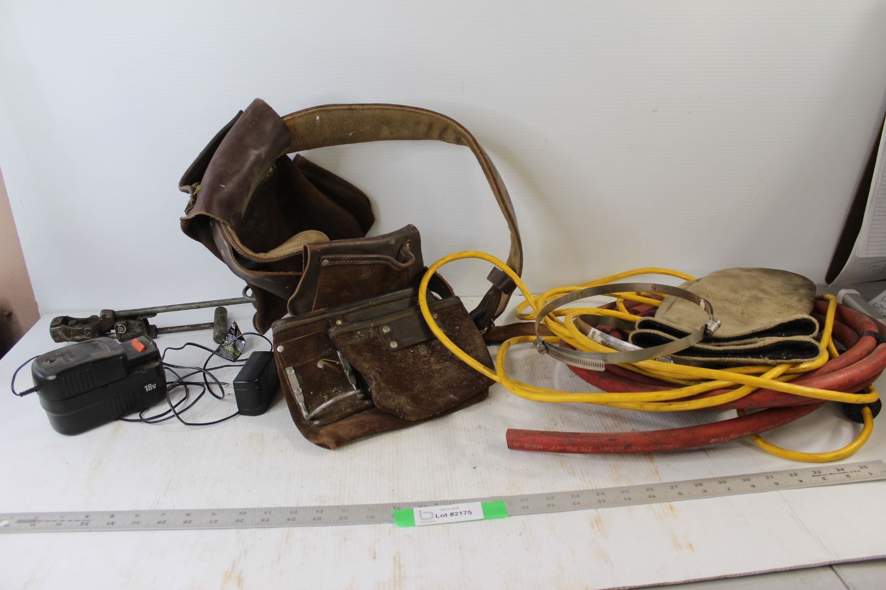 Leather Tool Belt, Extension Cord, Hose, 18v Battery Charger, Welding Mits