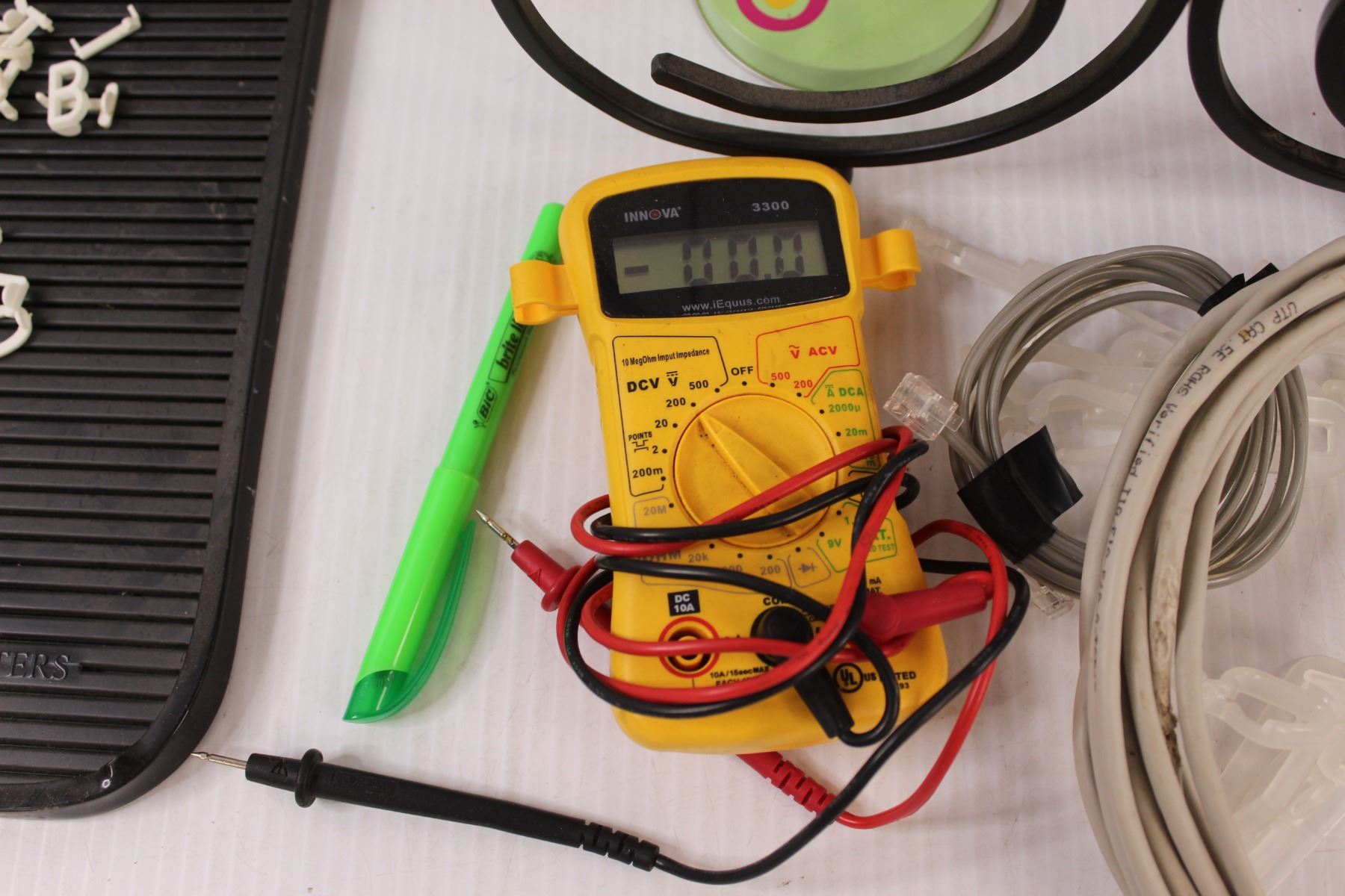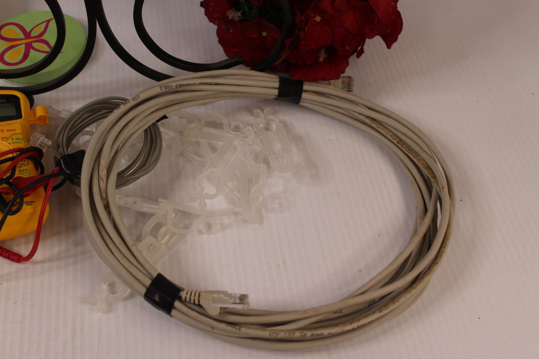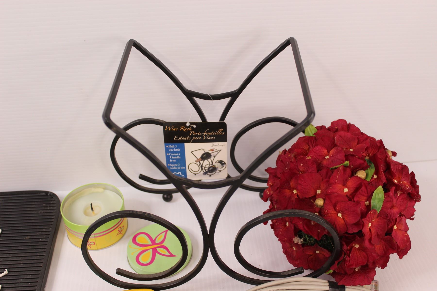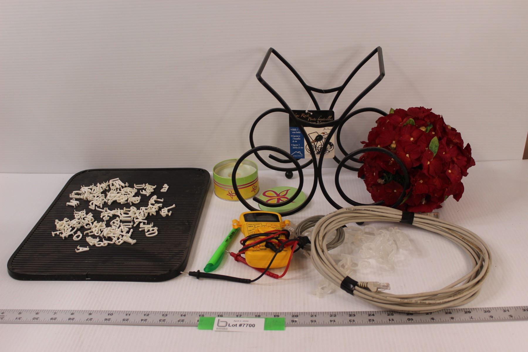 Letterboard, Wine Rack, Voltage Tester, Floral Ball Arrangement, Telephone Cord, Candle
