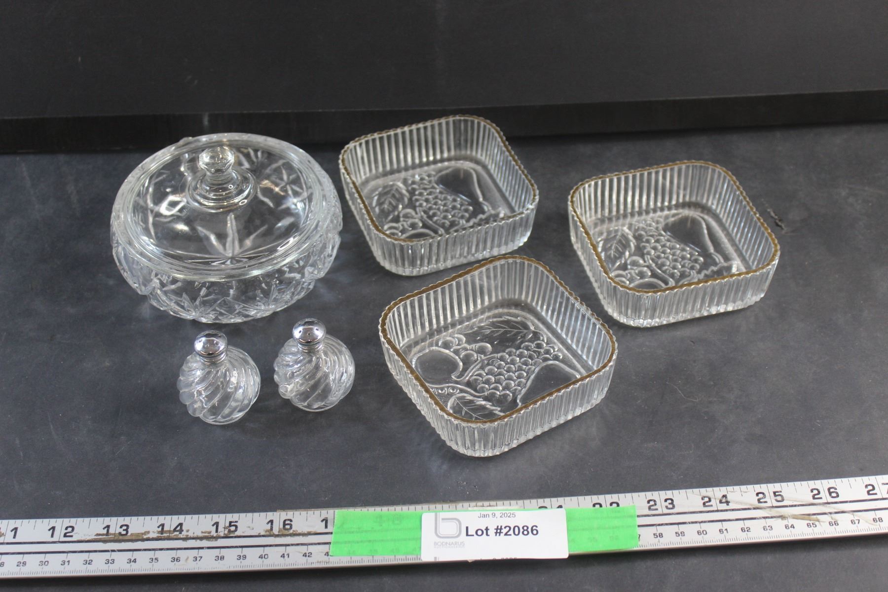 Lidded Crystal Dish, Candy Dishes and Salt & Pepper Shakers
