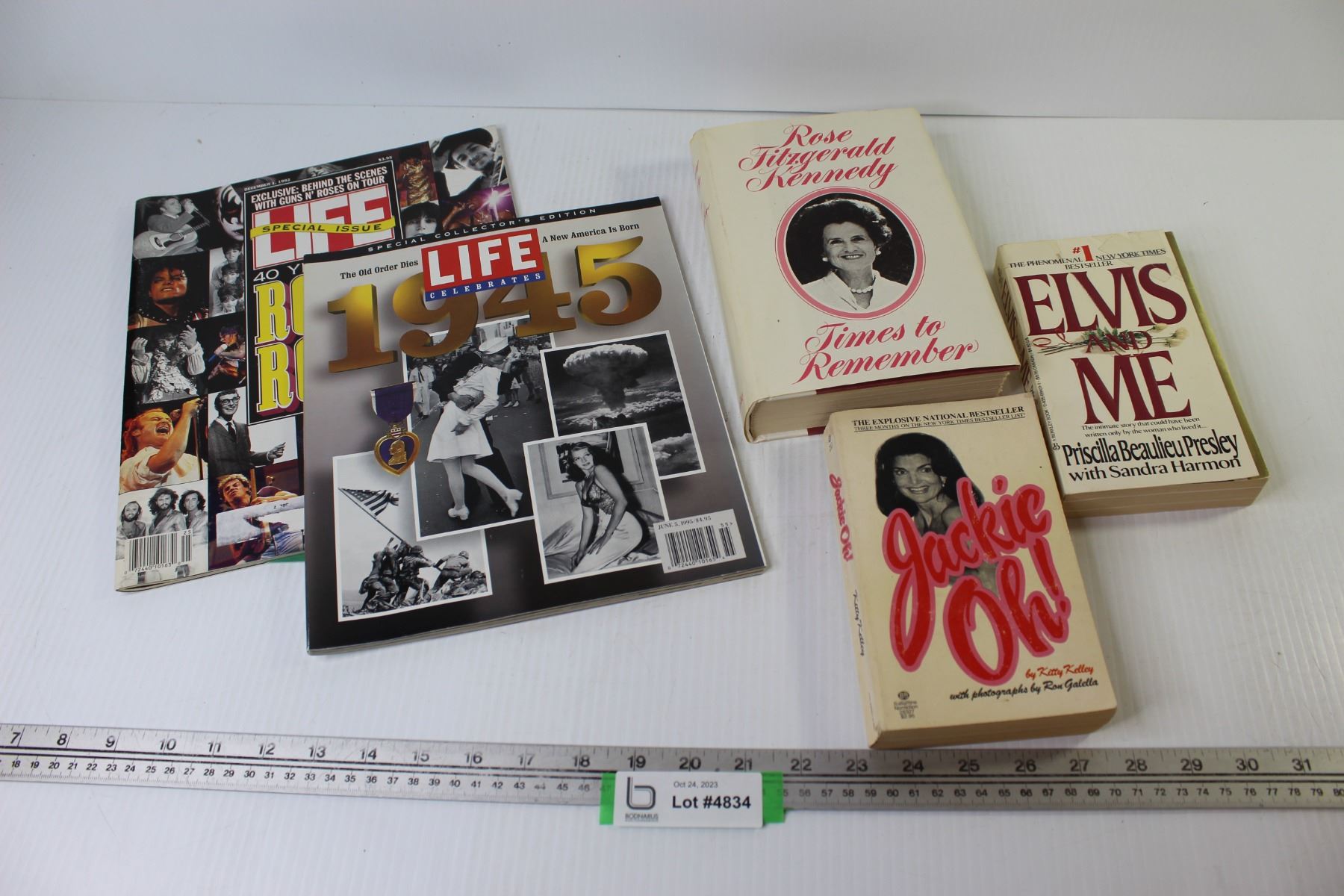 Life Magazines - (3) Books - Rose Fitzgerald Kennedy - Jackie Oh - Elvis & Me