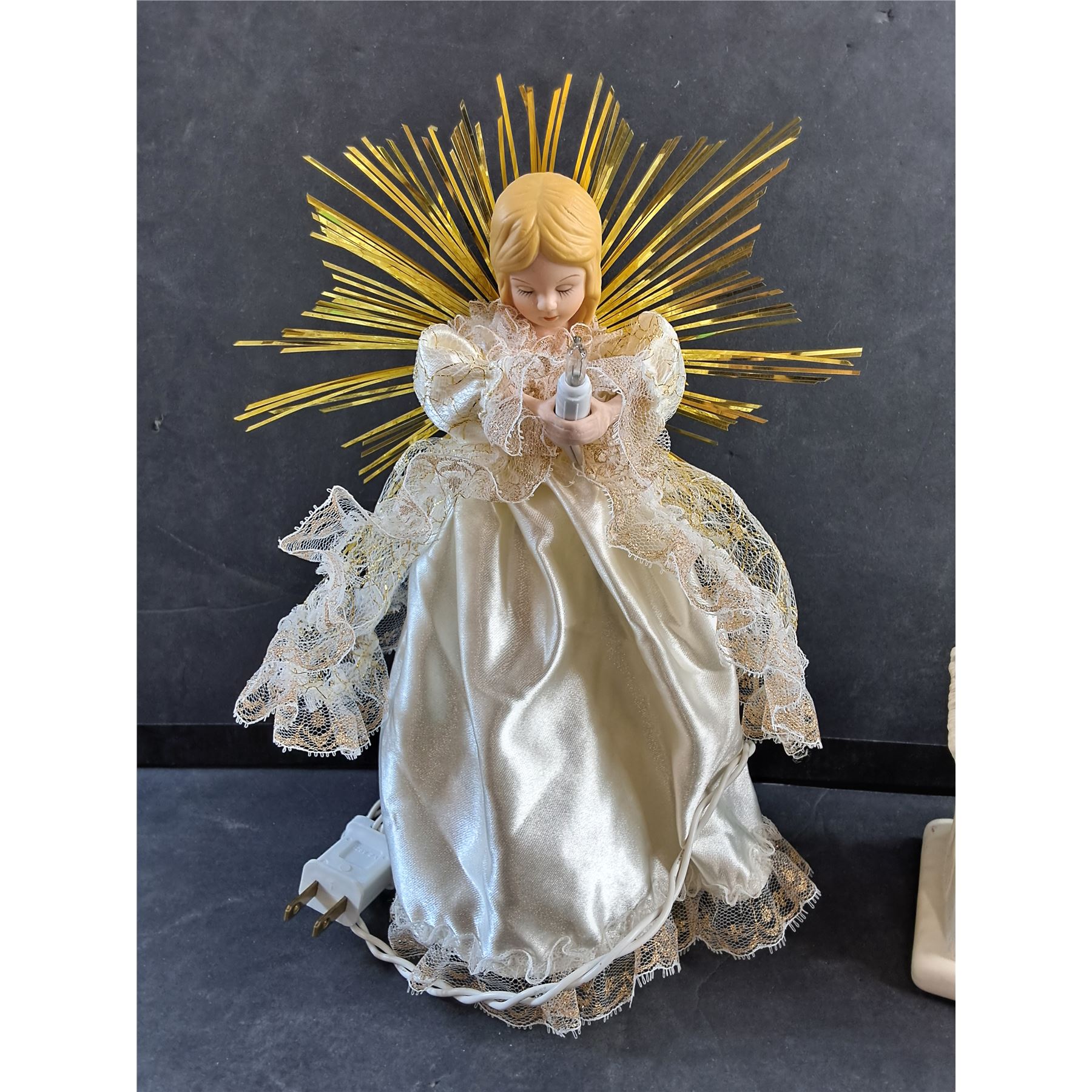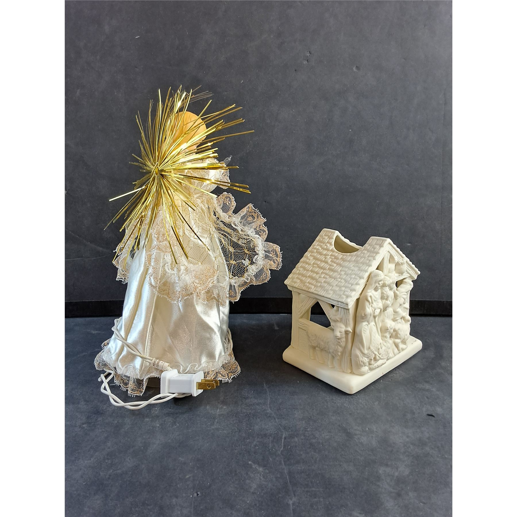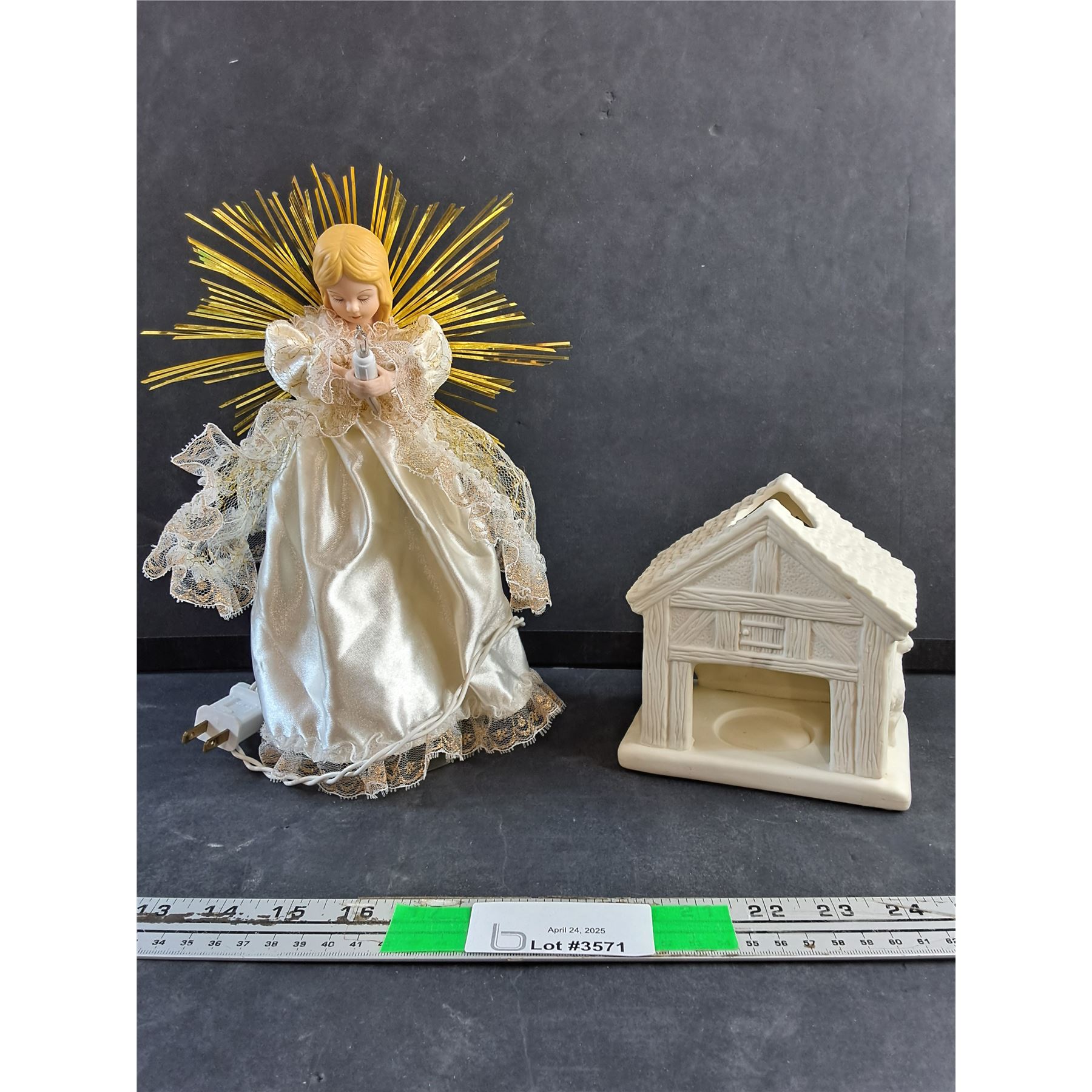 Light Up Christmas Angel Decoration and Ceramic Candle Holder