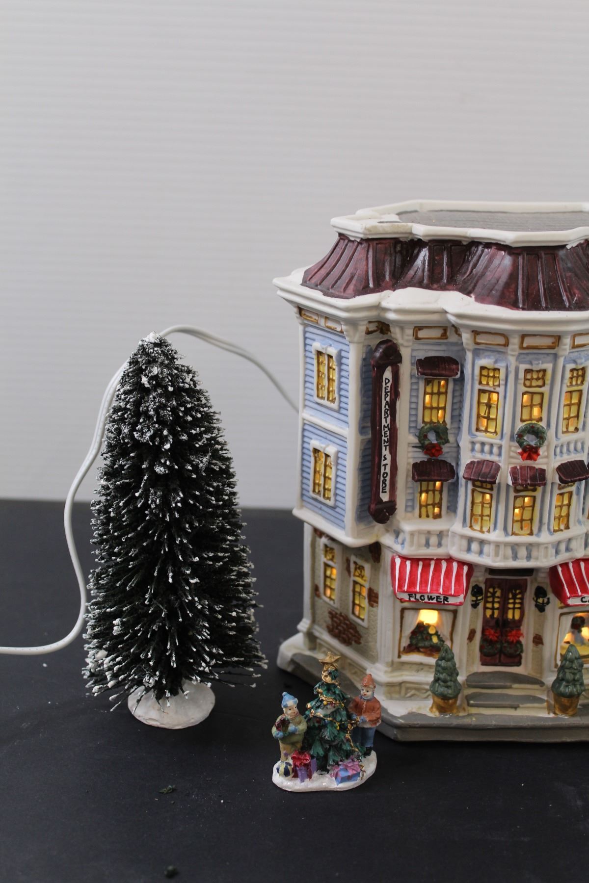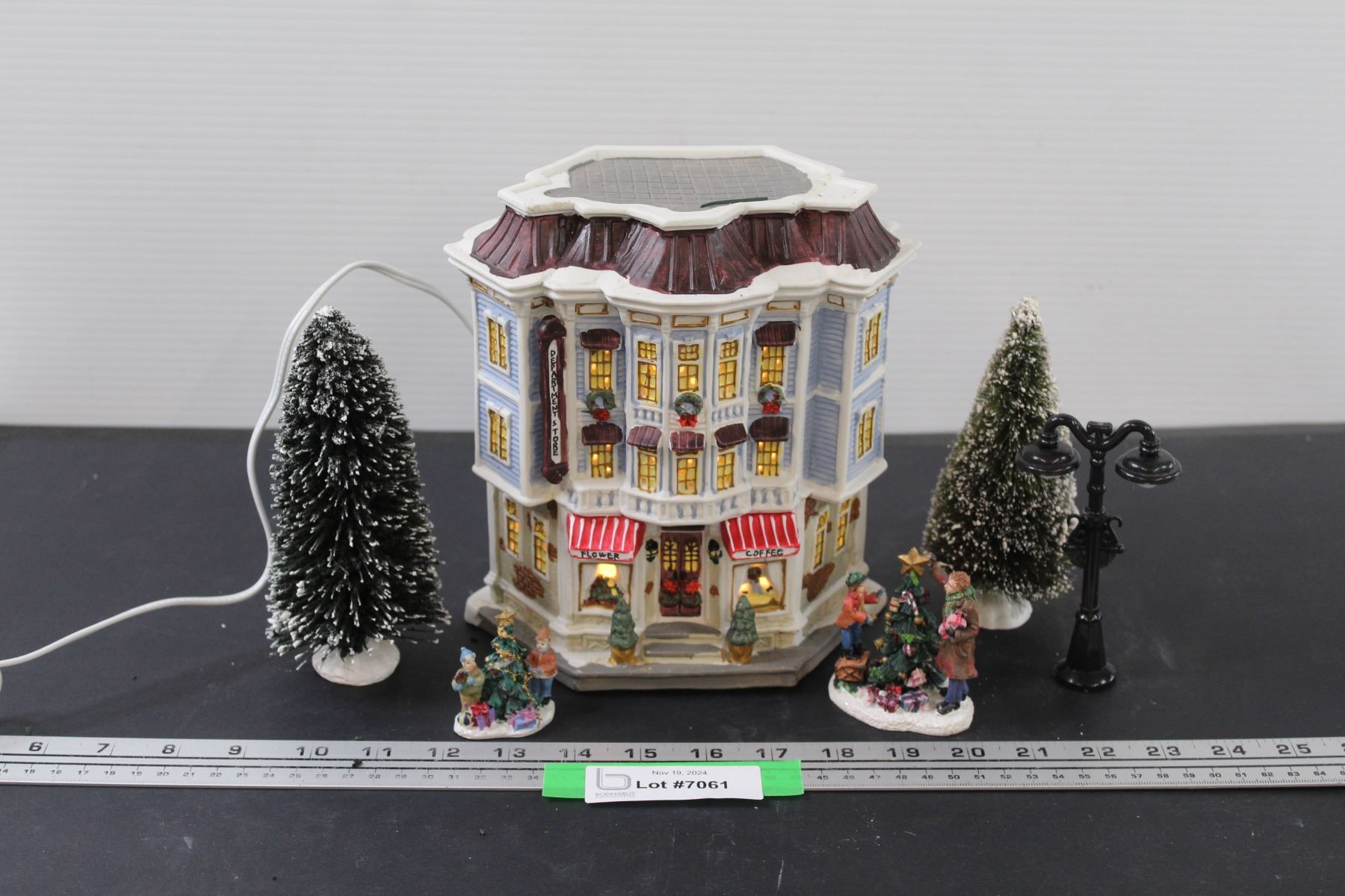 Light-up Christmas Flower & Coffee Shop Decor w/Figurines