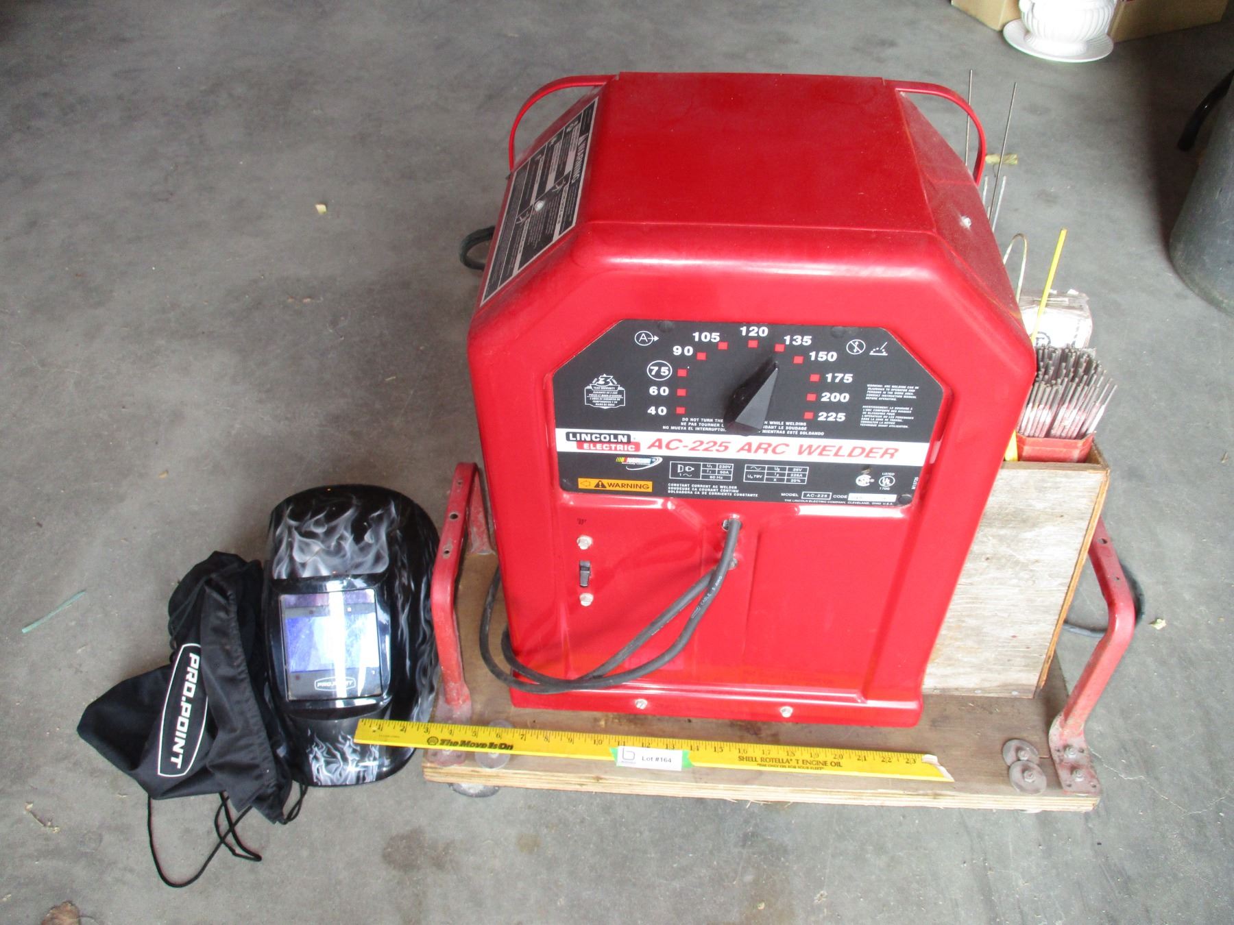 Lincoln Electric AC-225 Arc Welder, propoint safety helmet, cart, sticks