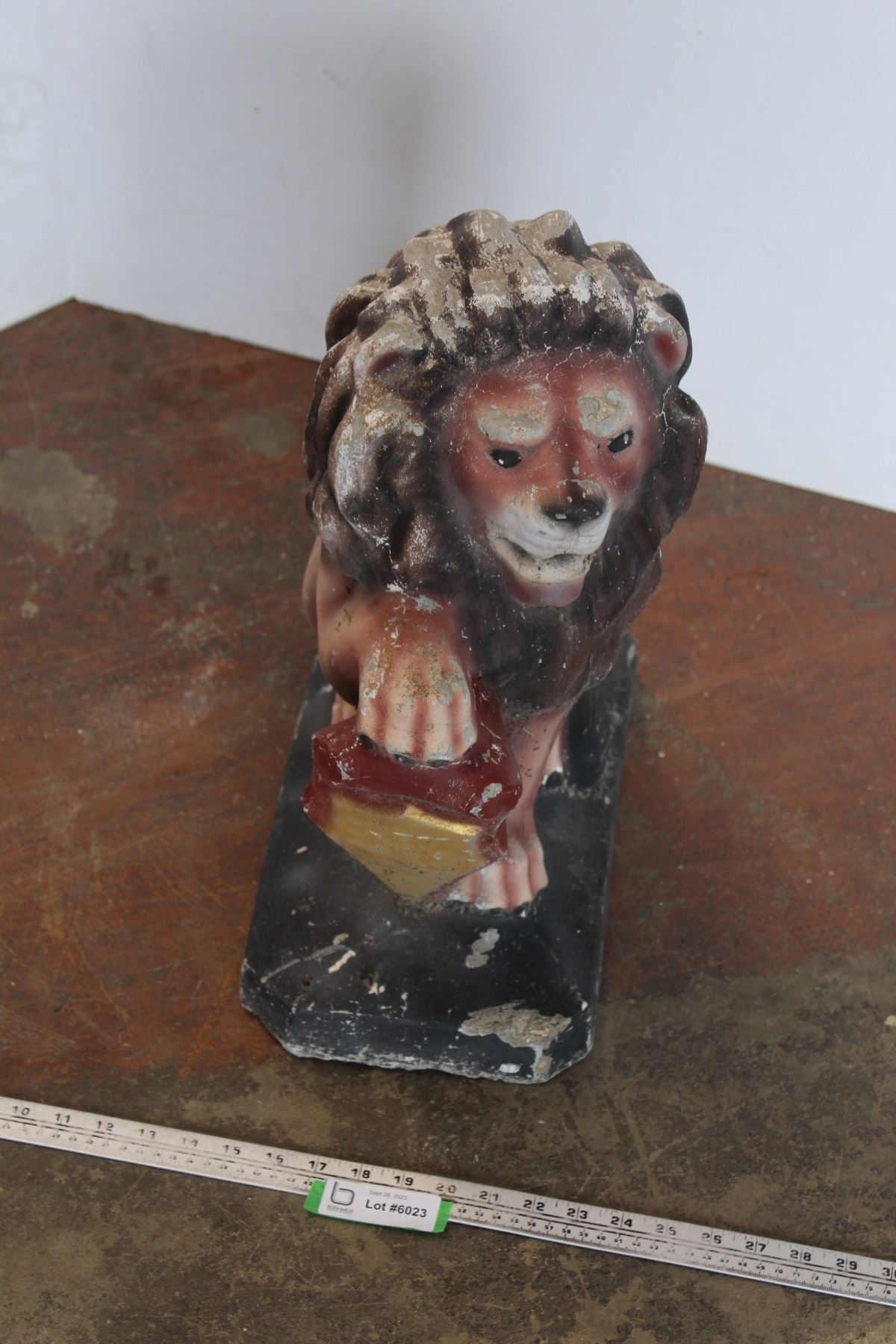 * Lion Concrete Lawn Ornament - 20" Tall, Some Damage, Heavy
