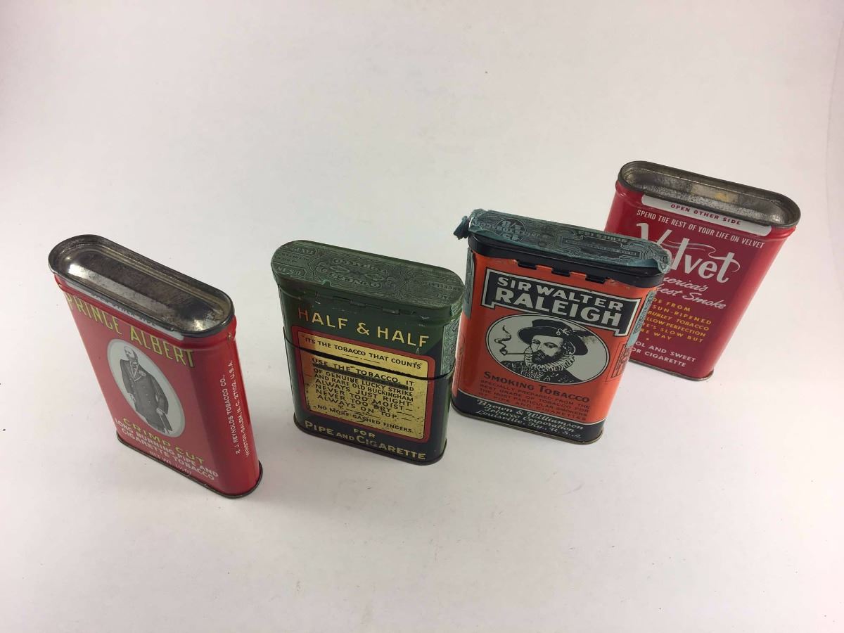 Lot (4) Pocket Tobacco Tins (Velvet, Raleigh, Half & Half, Prince Albert)