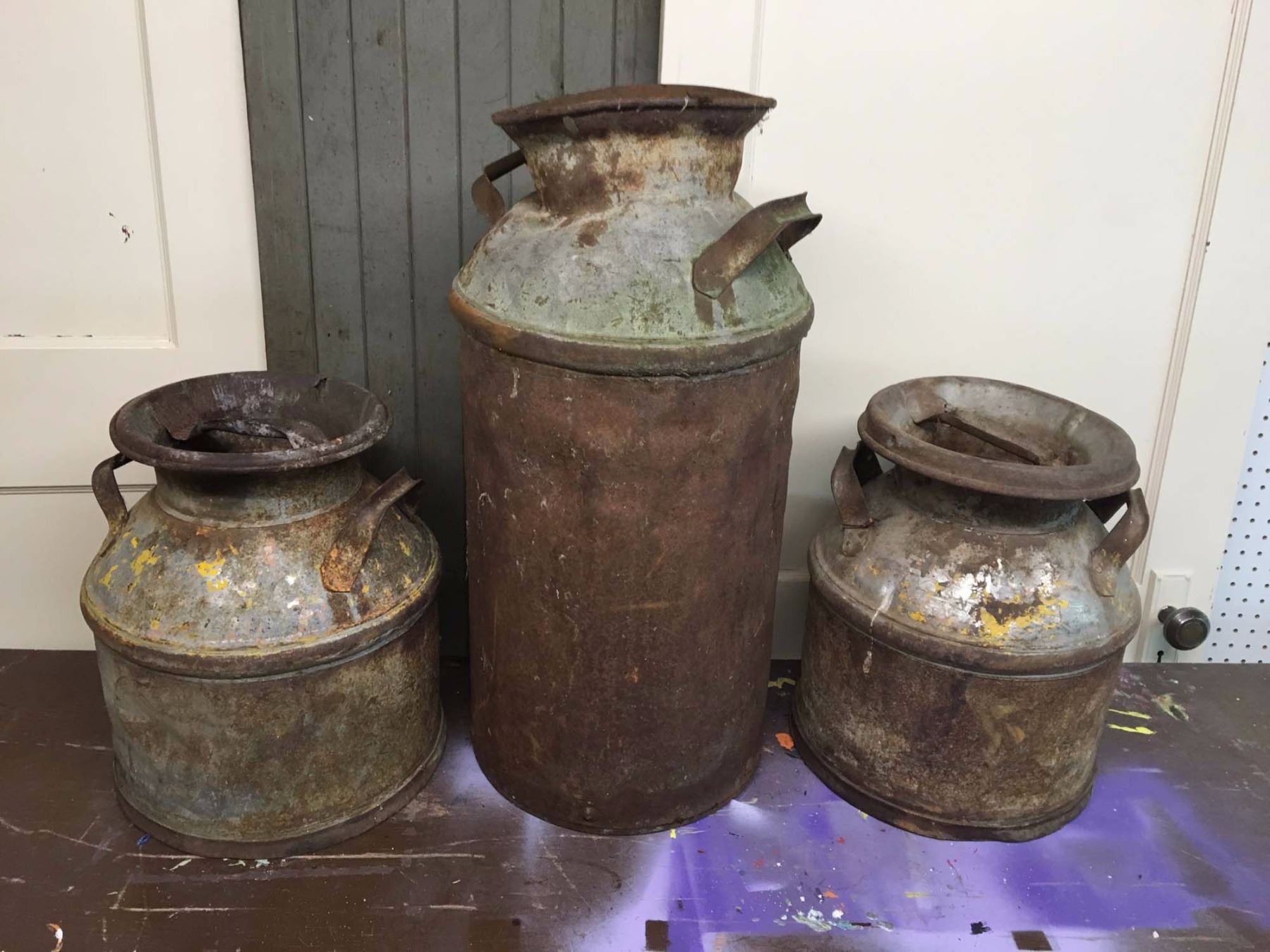 Lot Antique Farm Cream Cans 28" & 16" (3)
