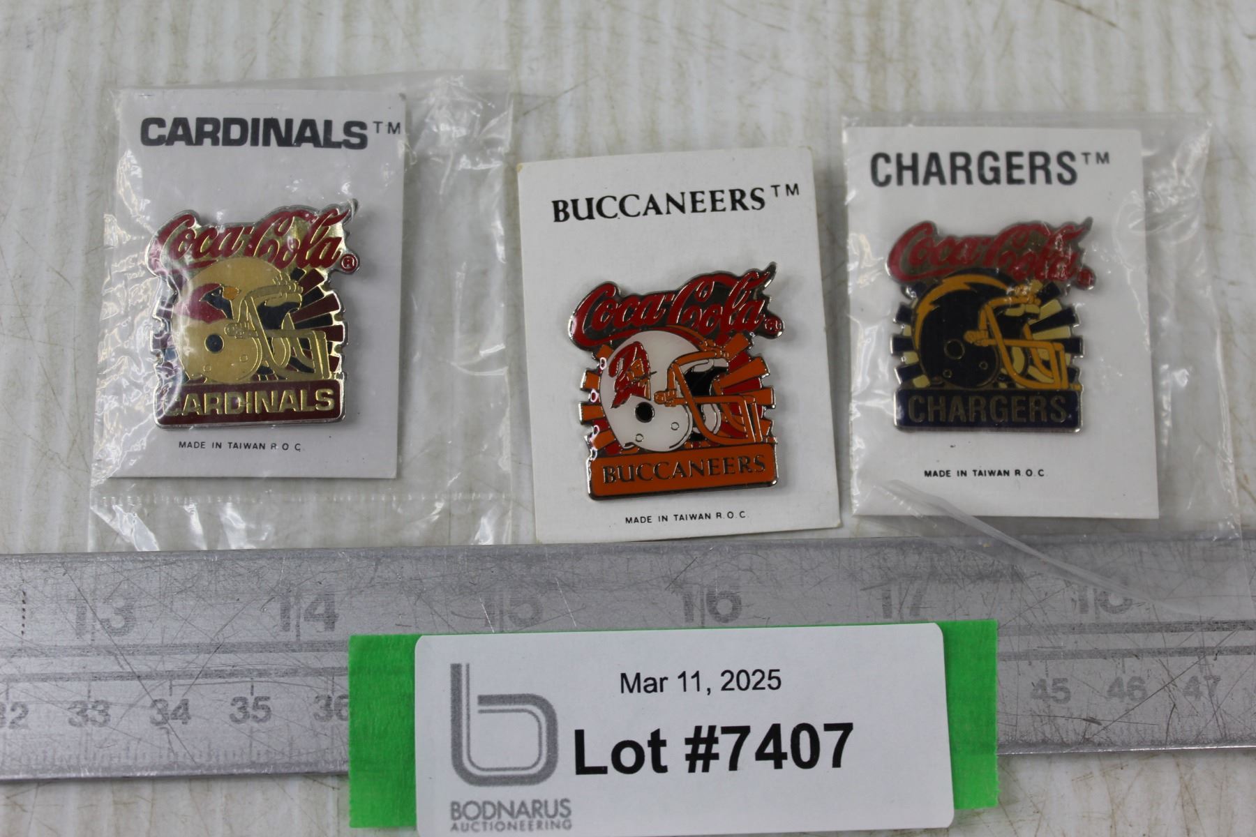 Lot Of (3) NFL Coca- Cola Sponsored Team Pins, Chargers, Misc