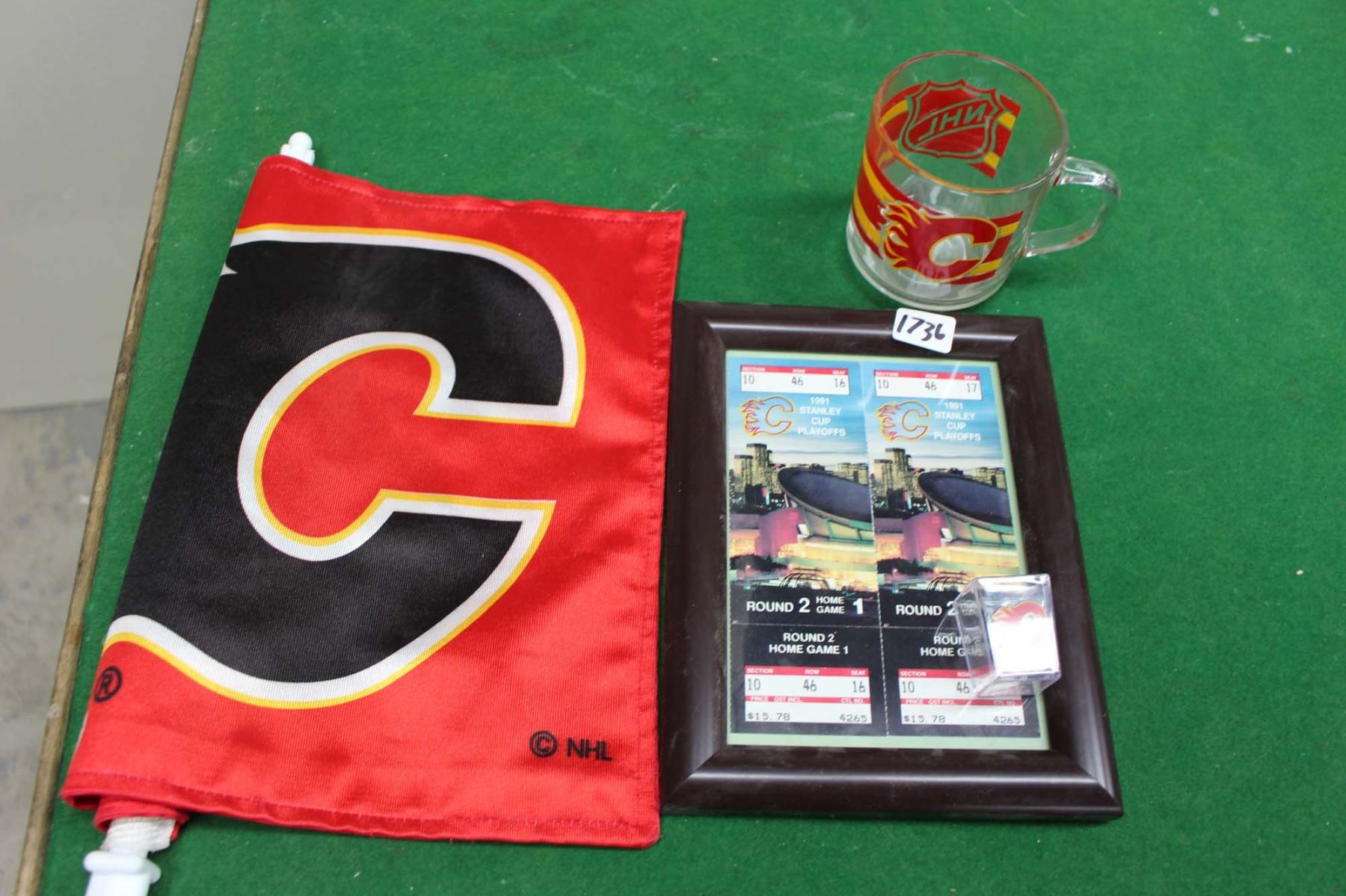 Lot Of Calgary Flames Memorabilia (Flag, Mug, Etc)