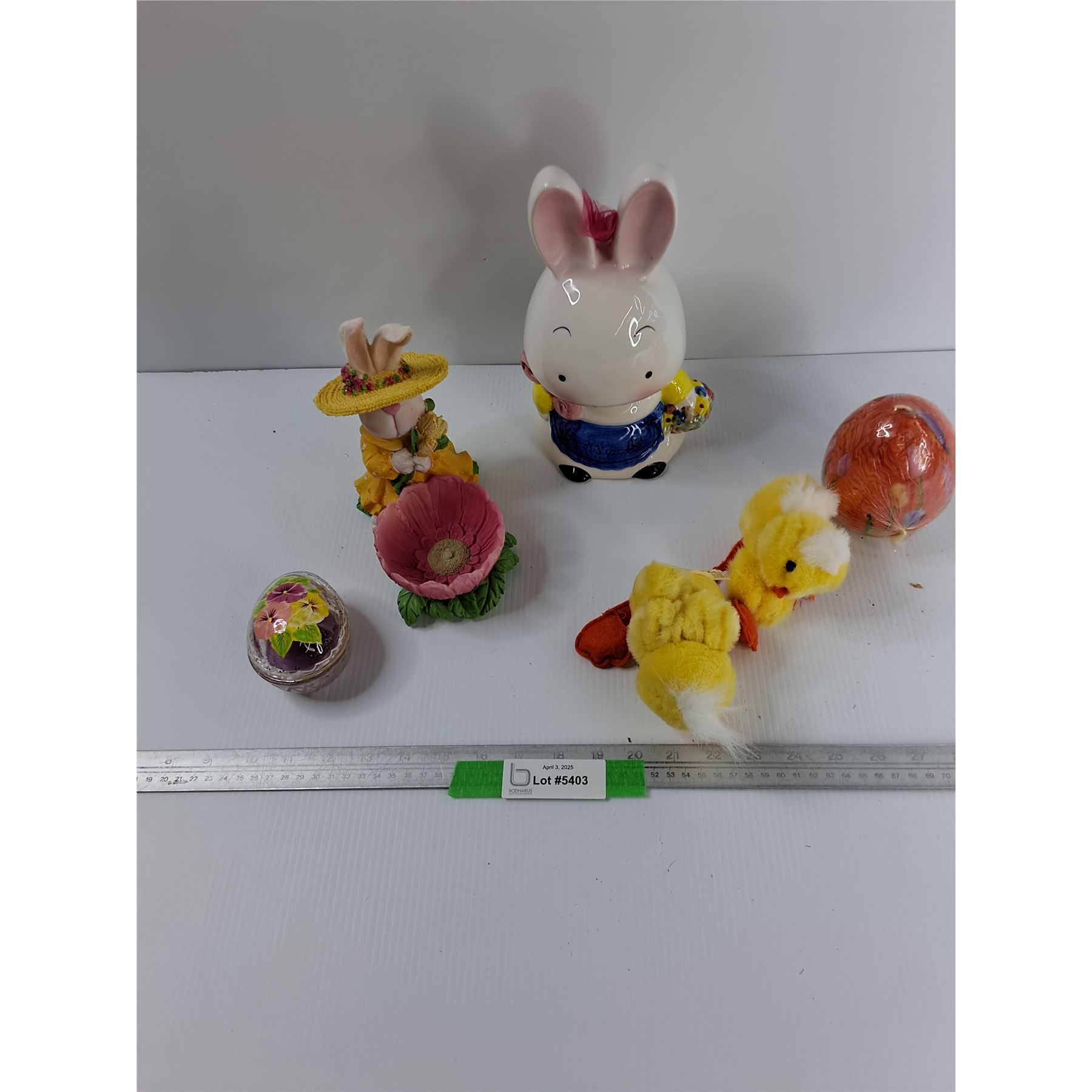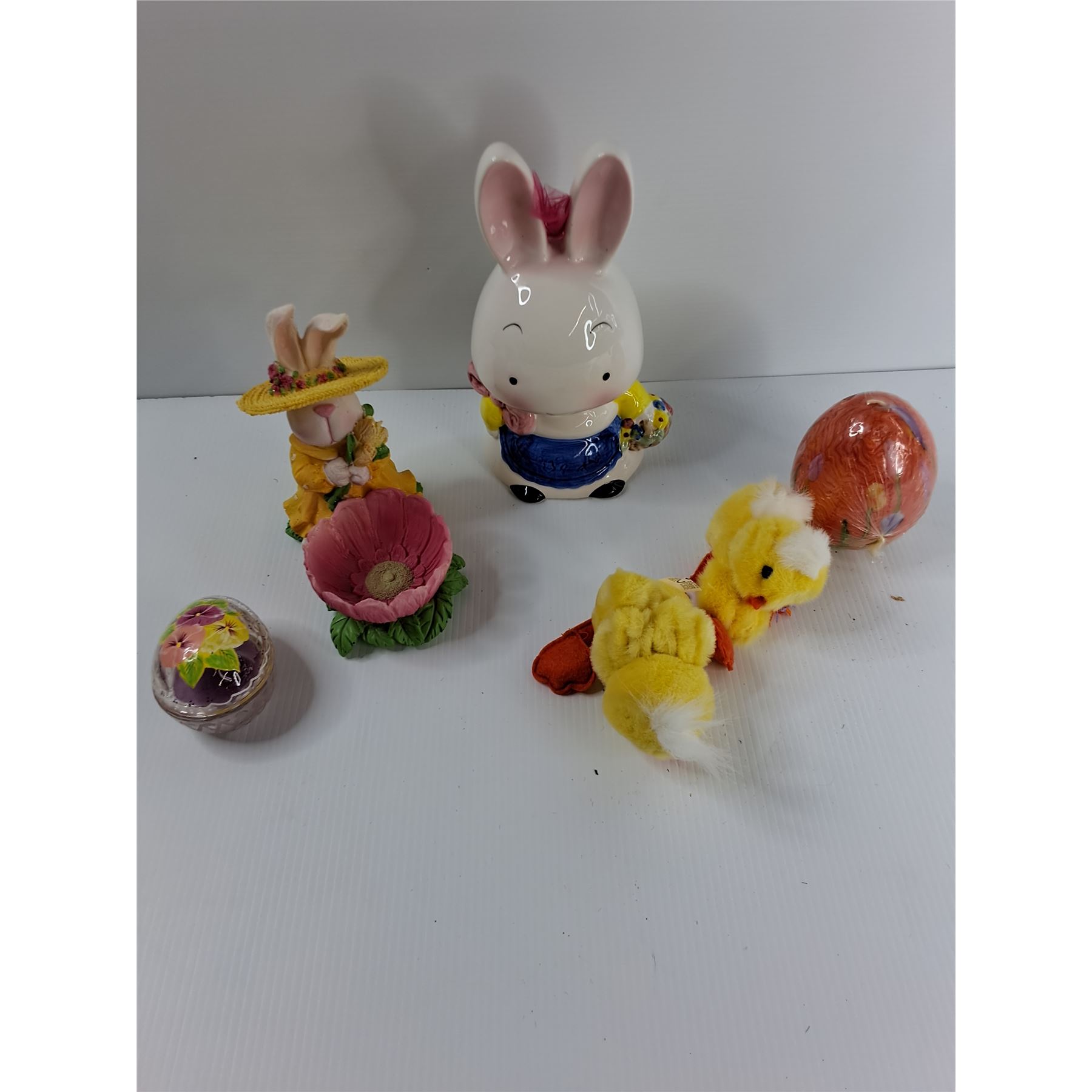 Lot Of Easter Themed decor/ Ornaments, Ceramic Bunny Con Bank, Candle, Misc