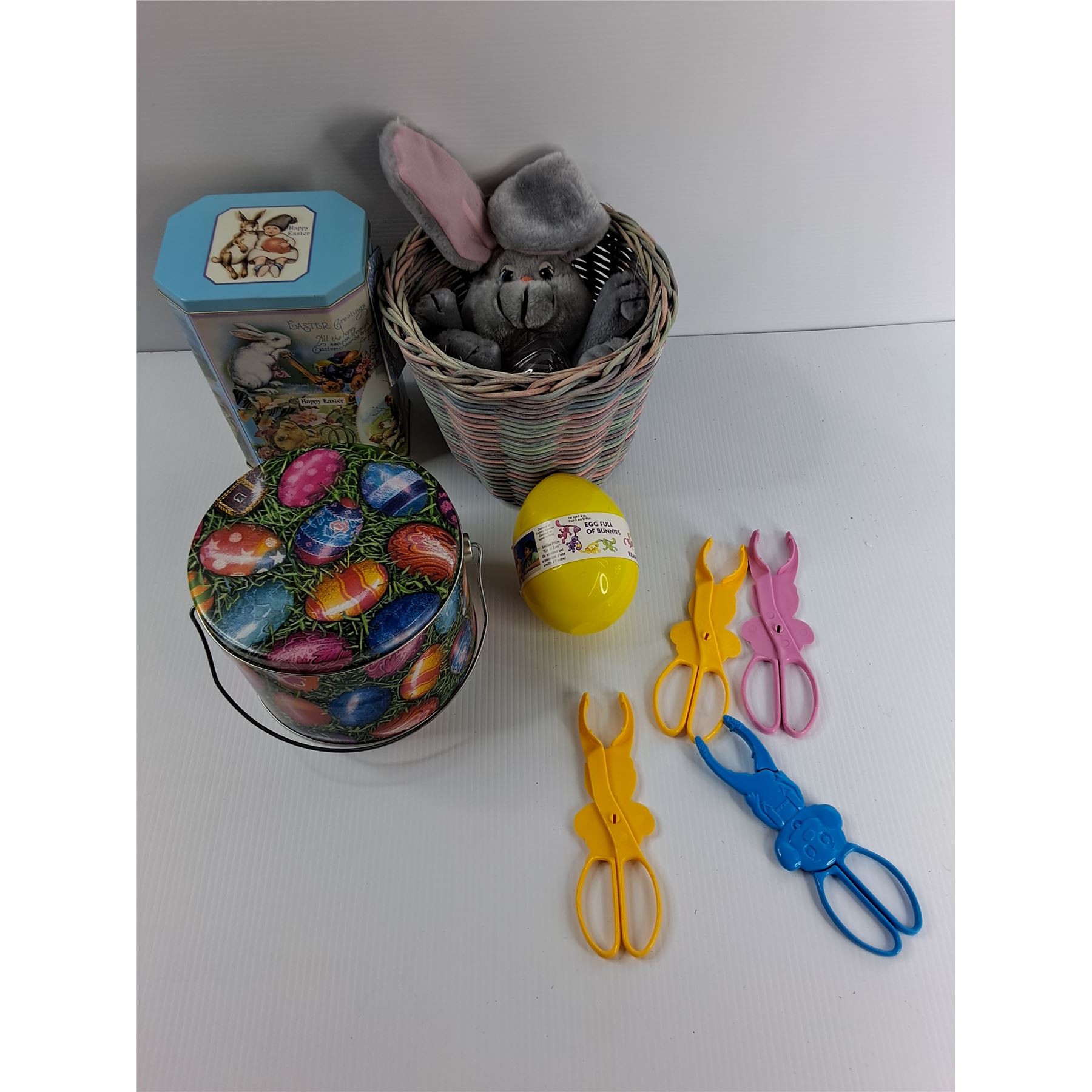 Lot Of Easter Themed Items, Tins, Basket, Misc