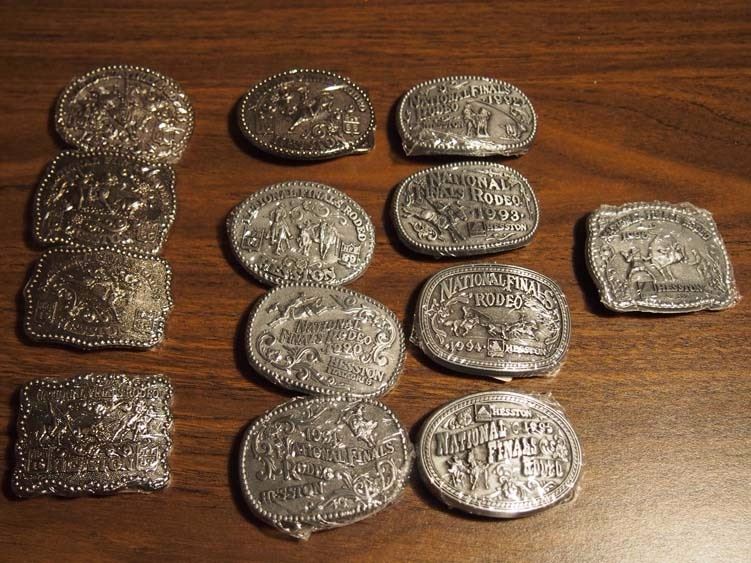 Lot Of Heston National Finals Rodeo Mini Belt Buckles, Set Fom1984-1996