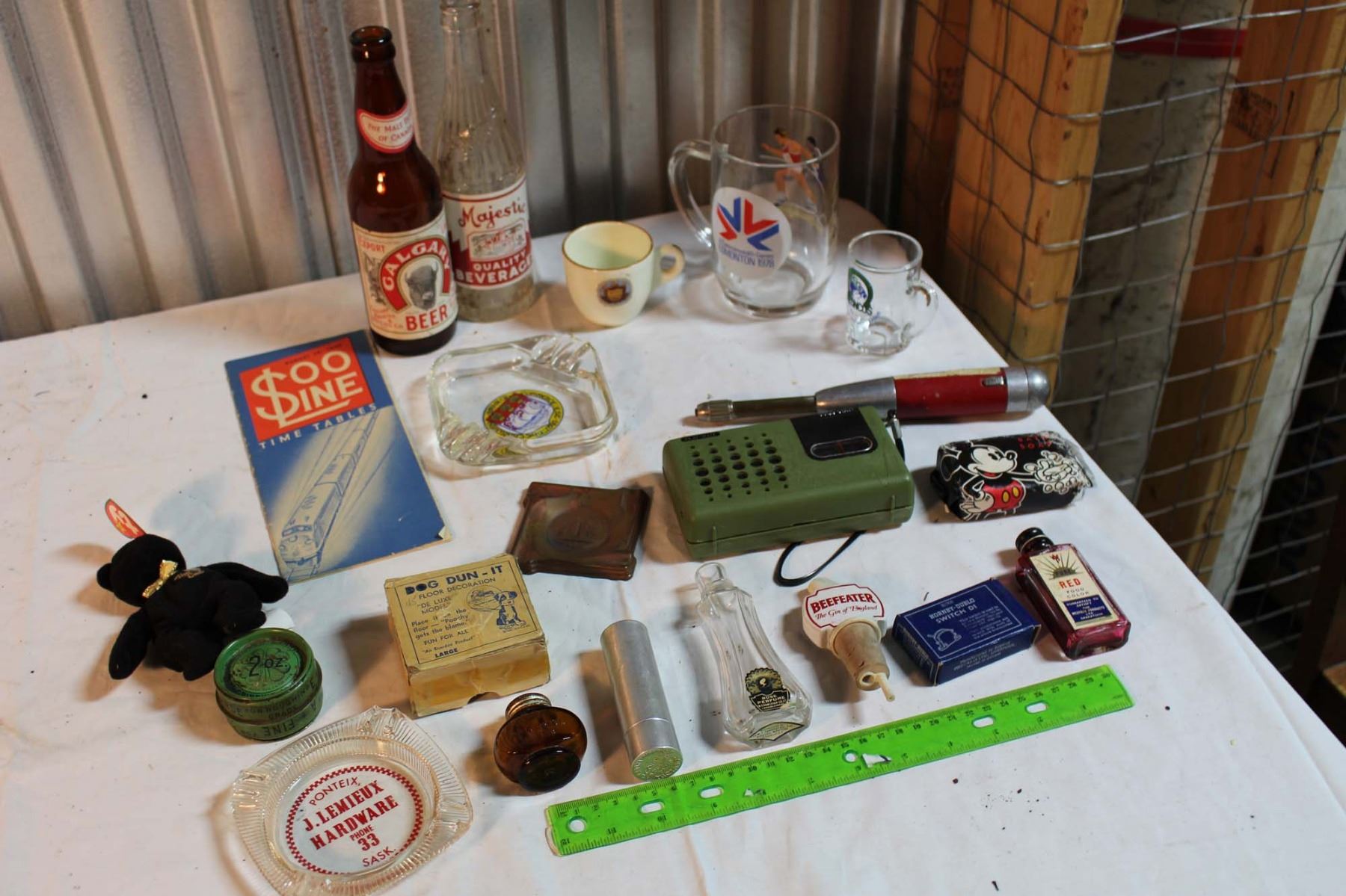 Lot Of Misc. (Bottles, Radio, Ashtrays, Glasses, Map Etc)
