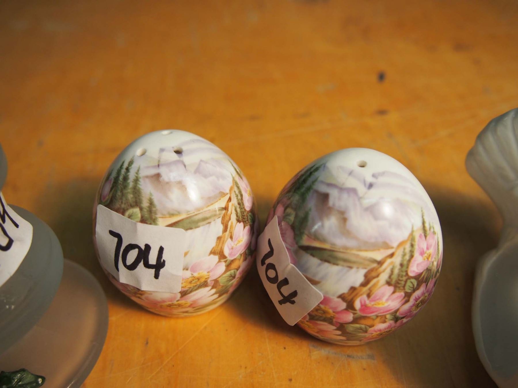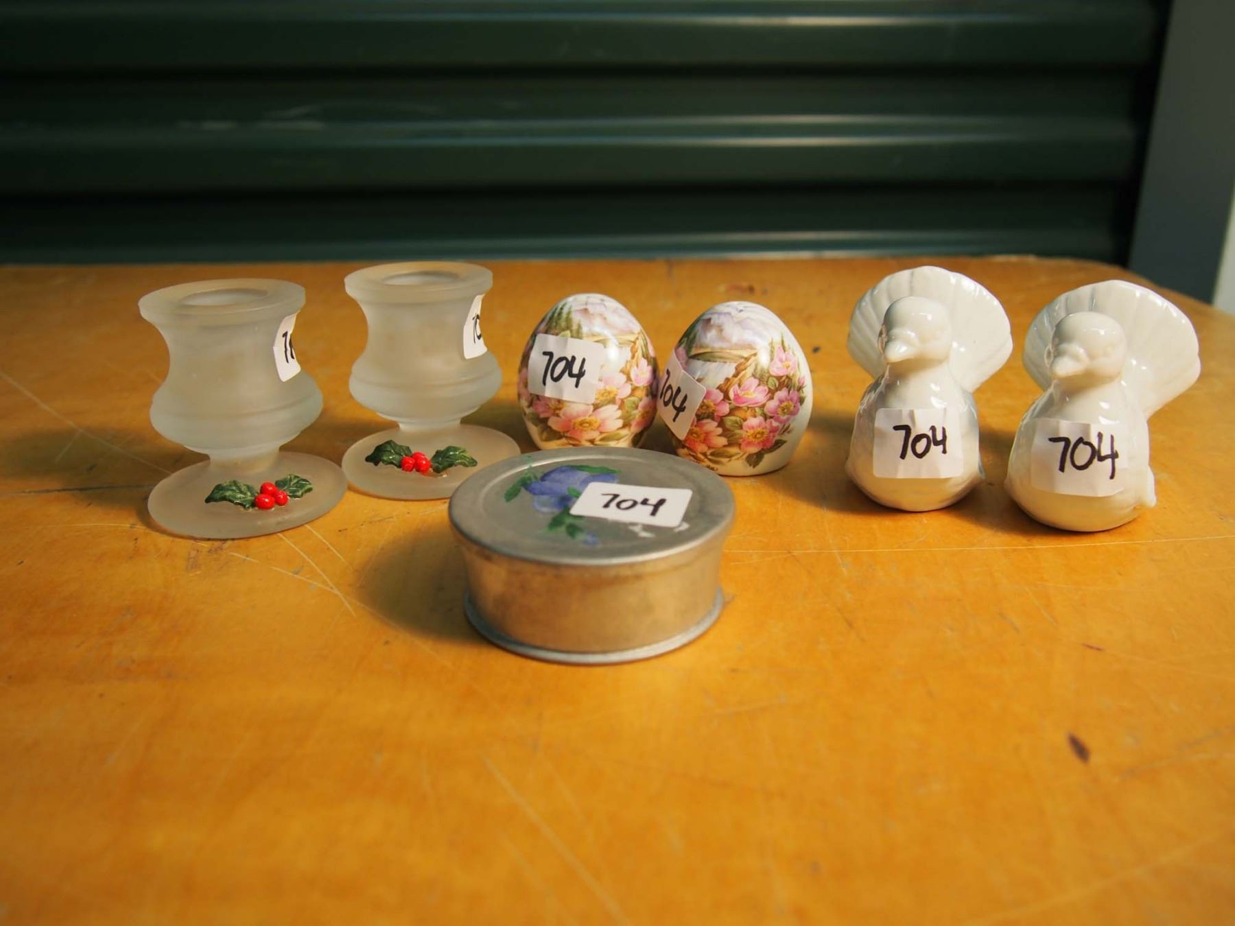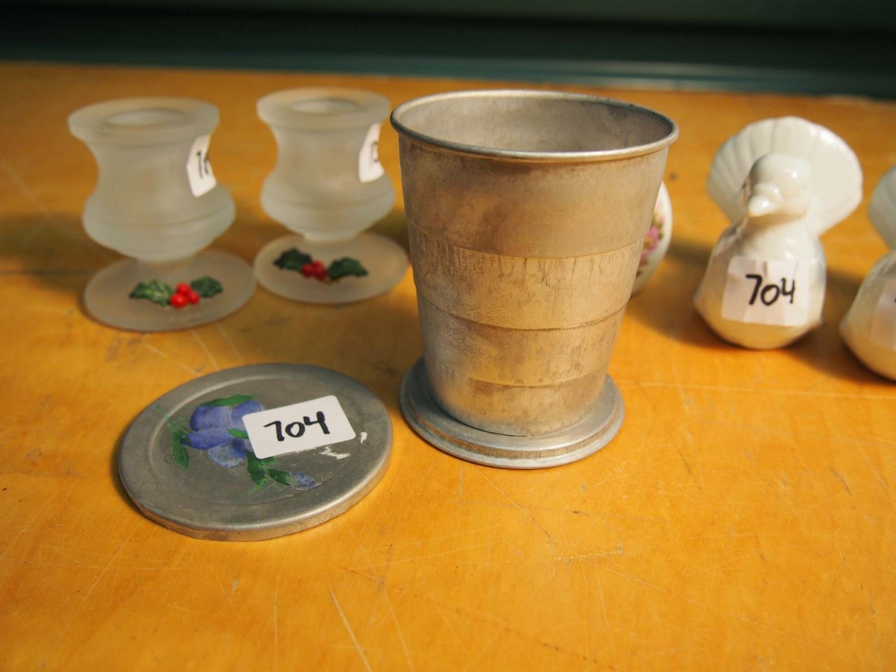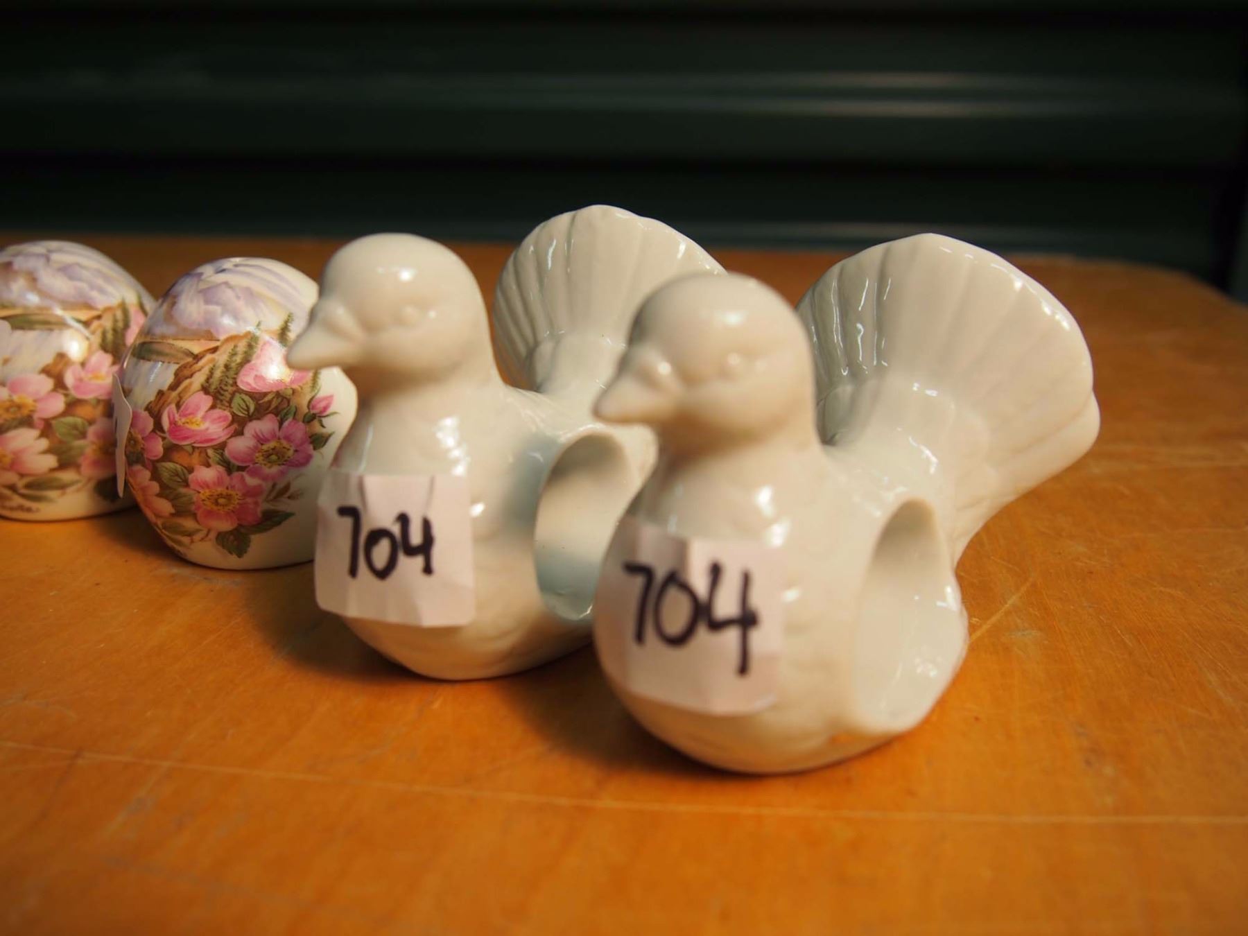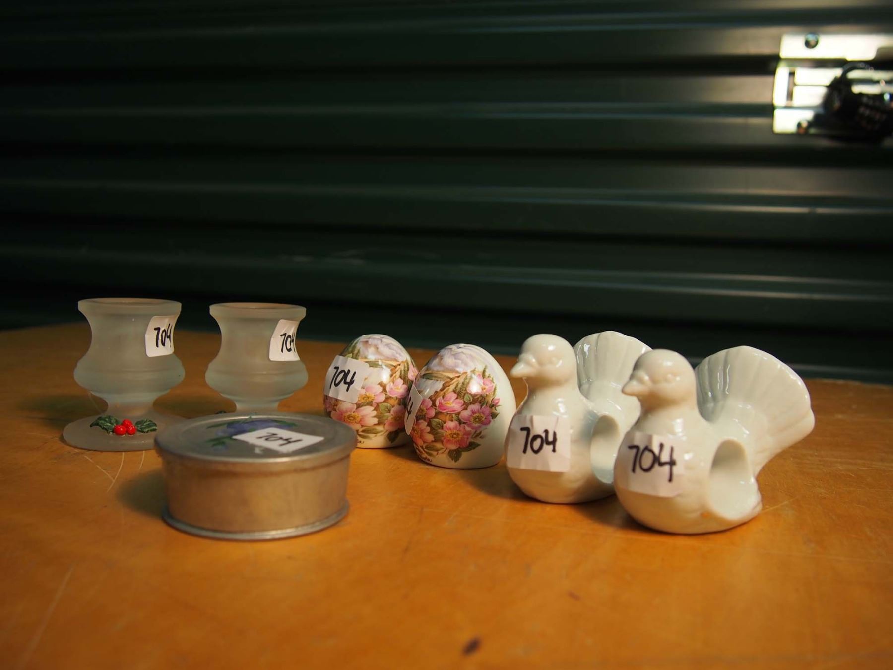 Lot Of Misc. (Salt & Pepper, Doves (2), Candle Holders, Collapsible Cup)