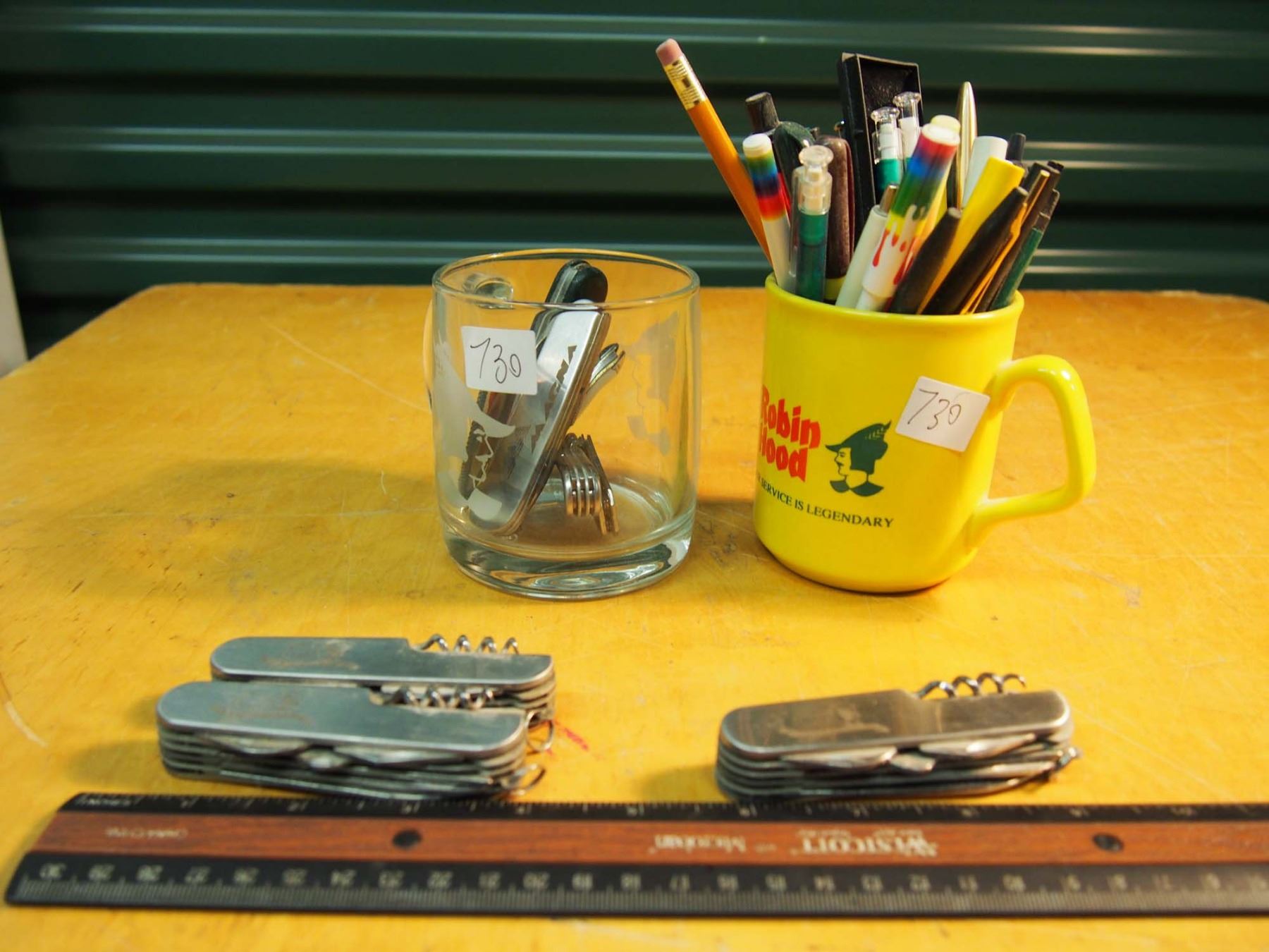 Lot Of Robin Hood Related Merchandise (Patches Pens, Folding Knives, Cups)