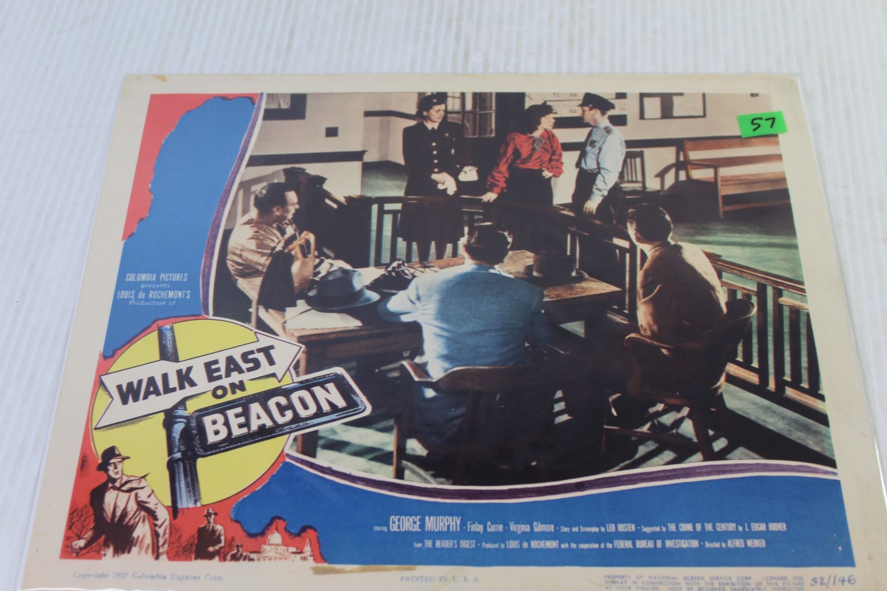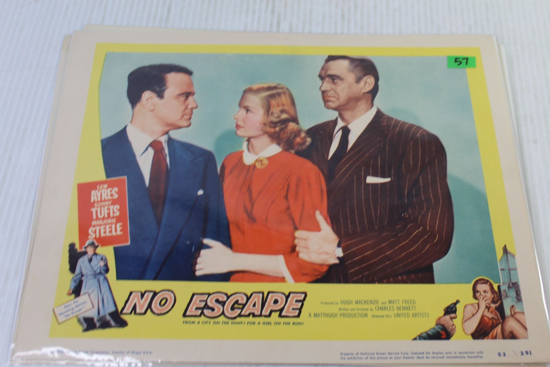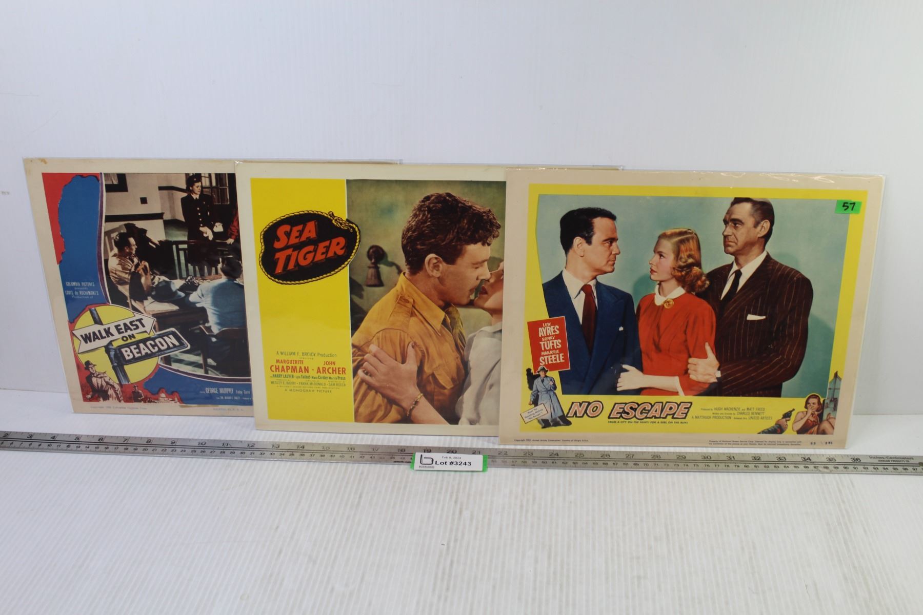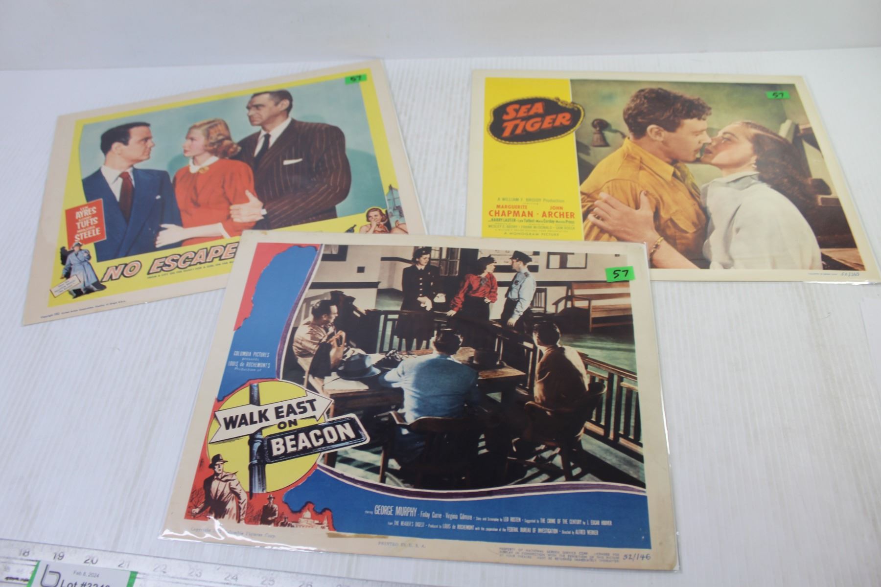 Lot Of Three Vintage Movie Cards From 1952-1953 - "Walk East On Beacon" - "The Sea Tiger" - "No Escape" Starring Lew Ayres & Majorie Tufts (11" x 14" - In Good Overall Condition)