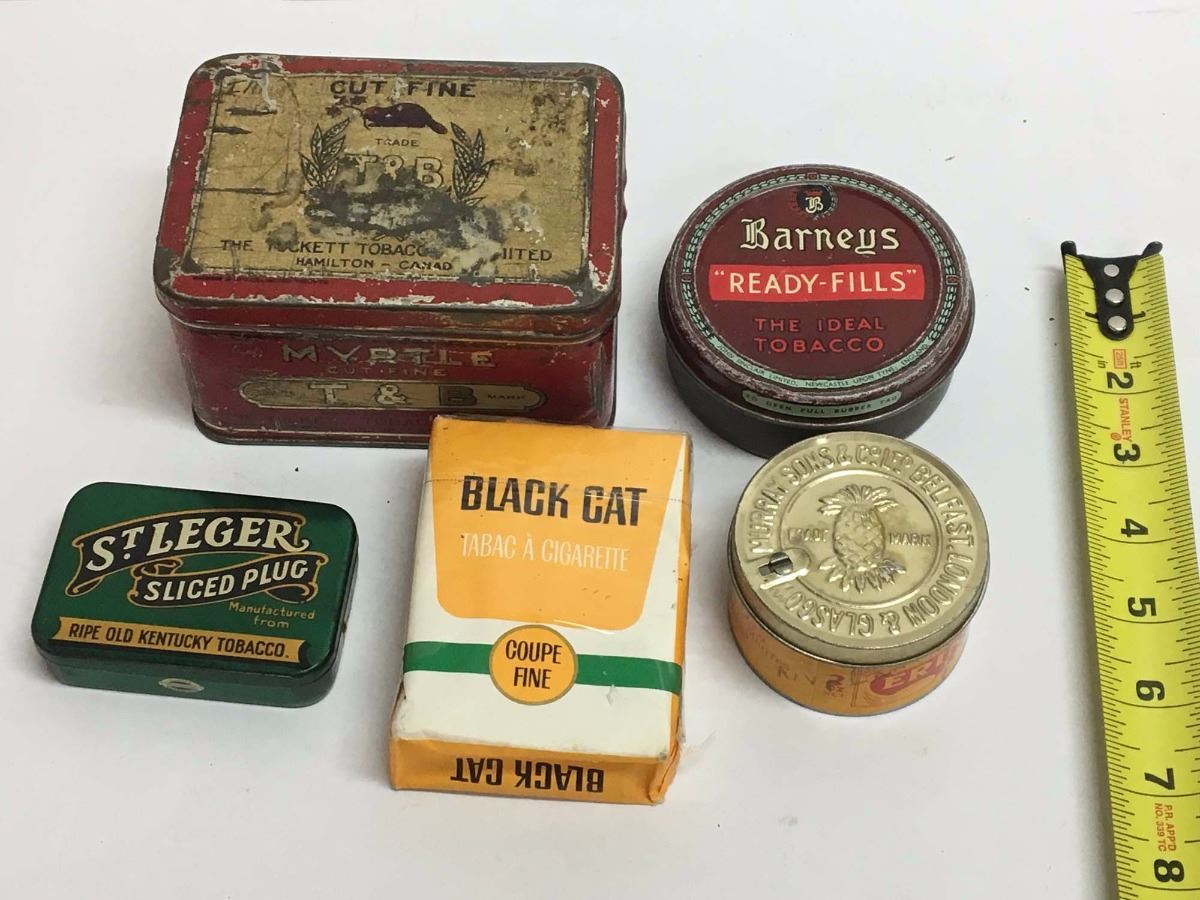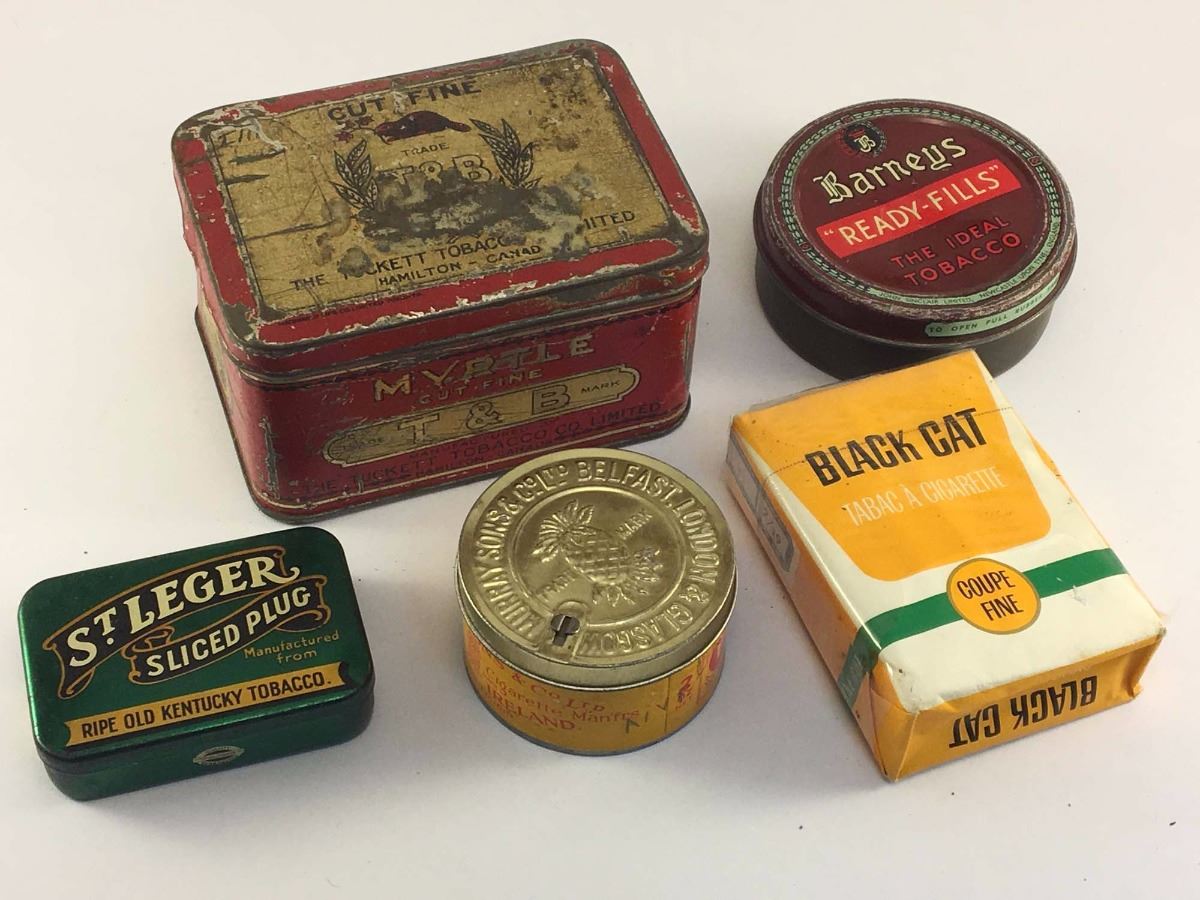 Lot Of Tobacco Tins (5 Pieces) (St. Leger, Erinmore, Barney's, Black Cat, Myrtle)