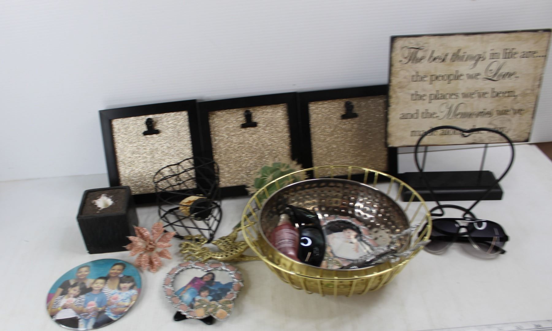 Lot Of Various Home Decor Pieces, Picture Frames,(1) Pair Of Ray Ban Sunglasses, Misc.