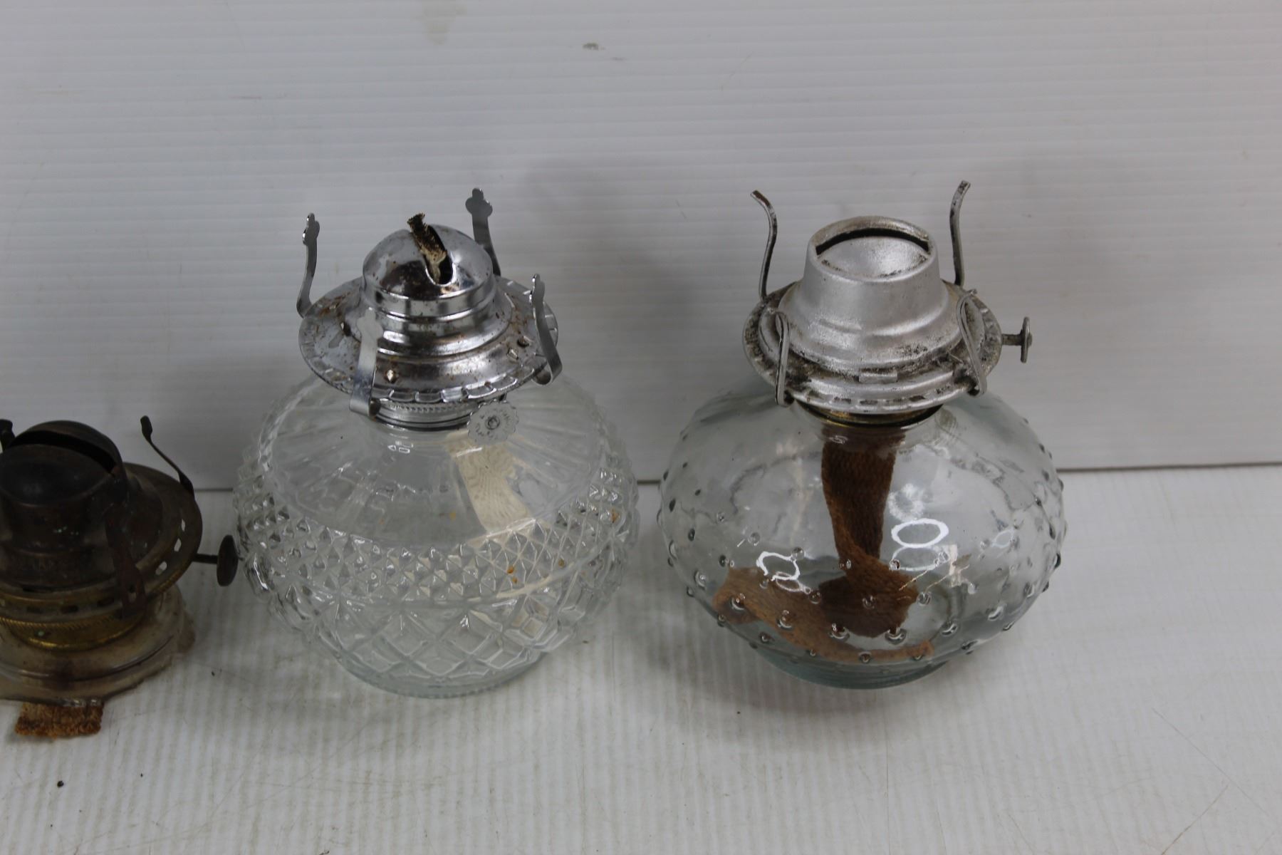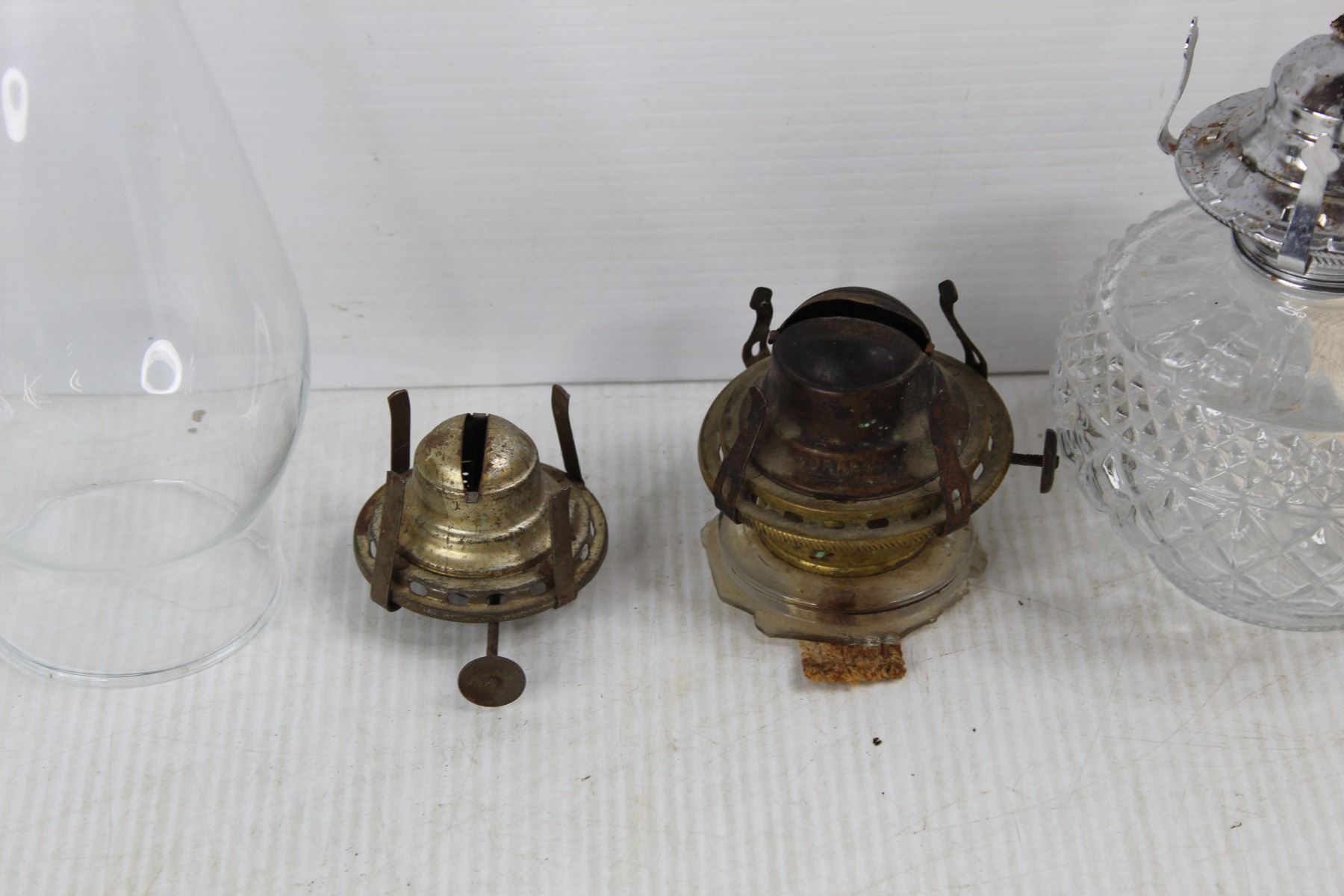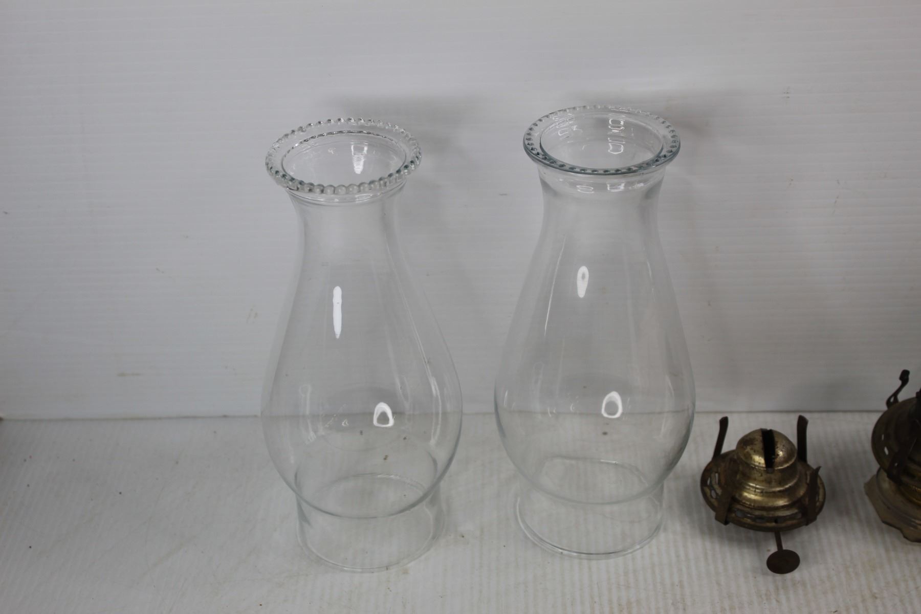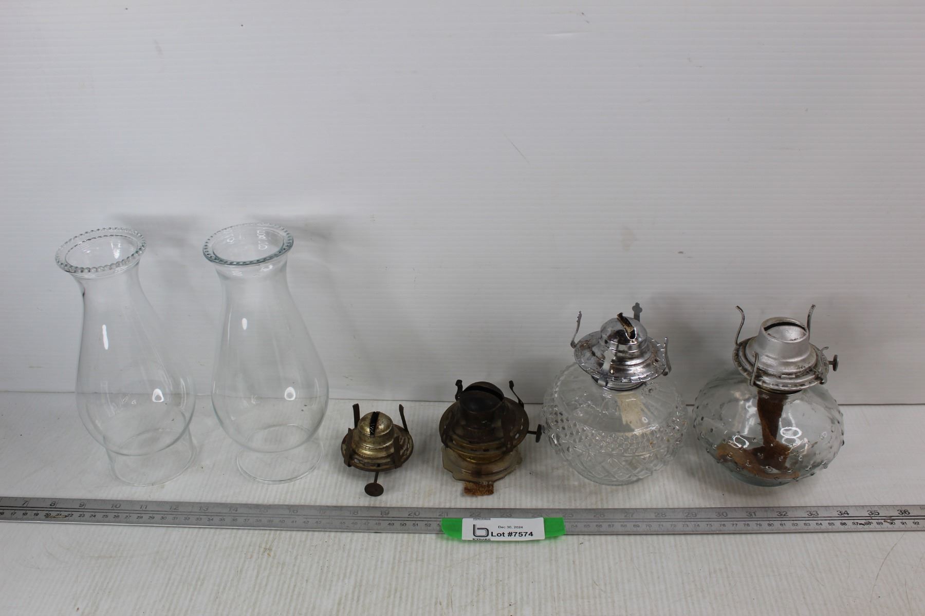 Lot Of Vintage Kerosene lamp Parts, (2) Chimneys, (2) Bases, Misc.