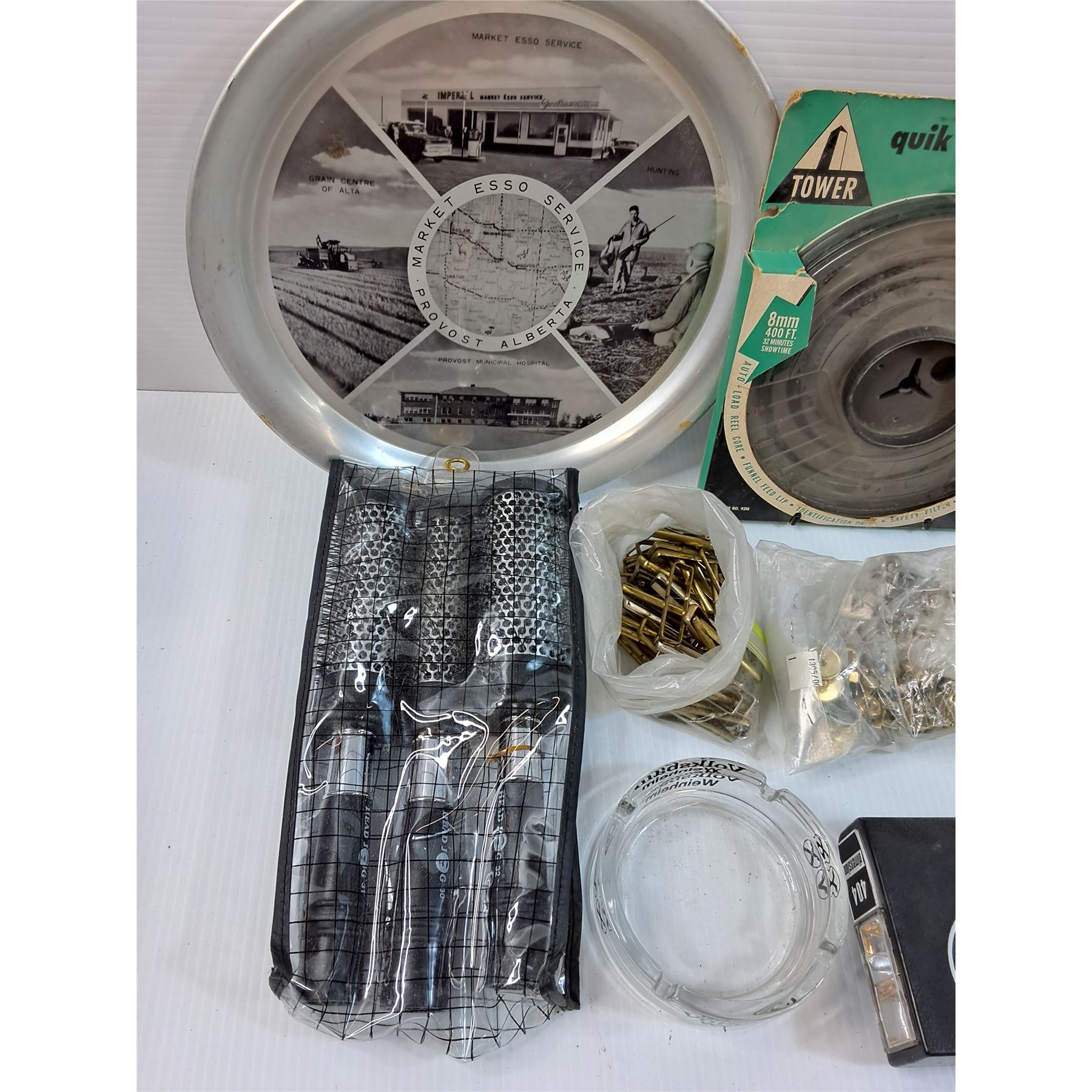 Lot: Scarf, Provost Esso Glass Volksbank Ashtray, (3) Hairbrushes, Misc