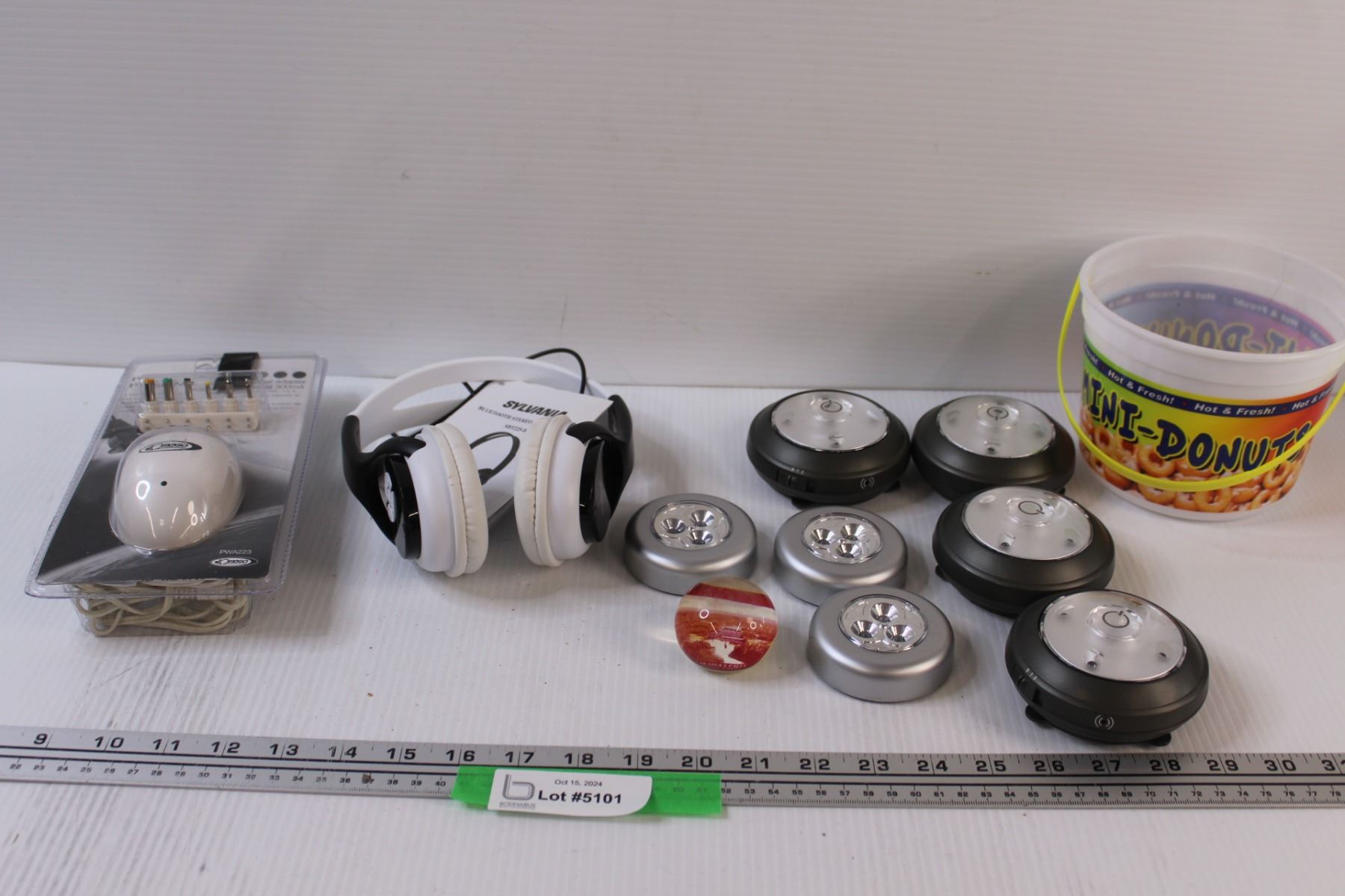 Lot: Sylvania Bluetooth Headphones (as is), (70 Puck Lights, as is, Power Centre - in box, as is