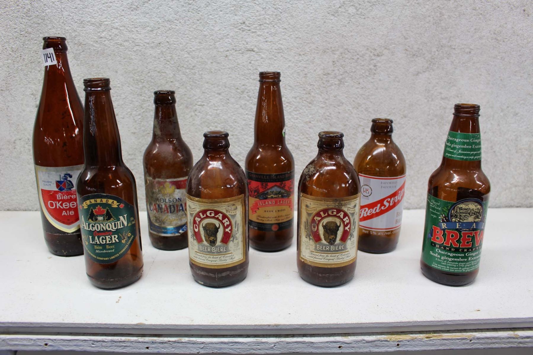 Lot of Assorted Liquor Bottles (8)(Molson Canadian, Calgary Beer, Algonquin Lager, etc;)