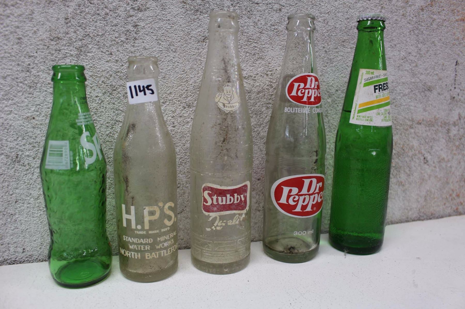 Lot of Assorted Soda Glass Bottles (5)(H.P’S North Battleford, Dr Pepper, Stubby, Fresca, Sprite)