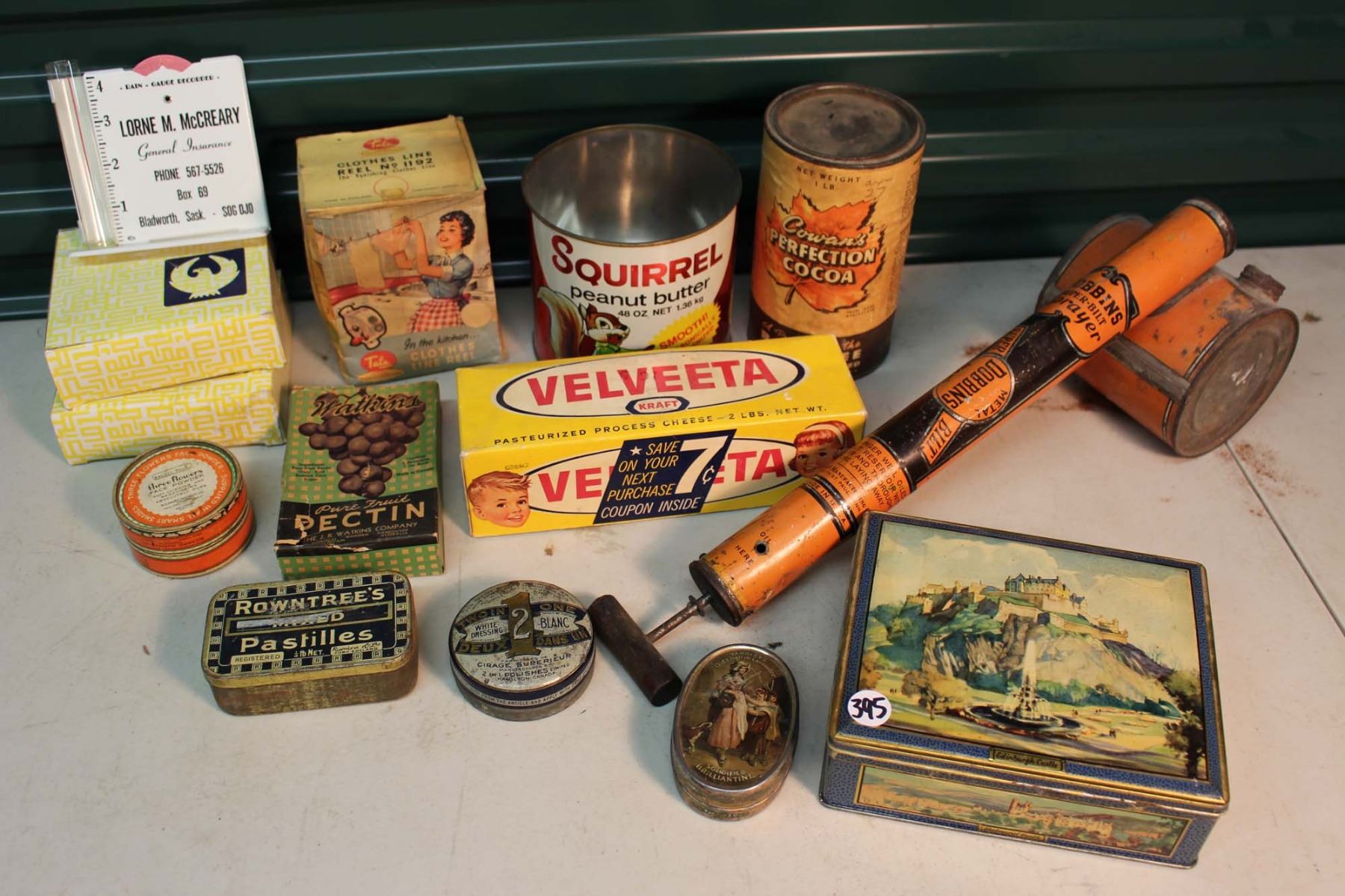 Lot of Assorted Vintage Tins, Boxes & Insecticide Sprayer
