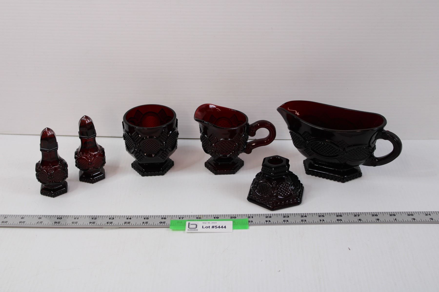 Lot of Avon Cape Cod Gravy Boat, Creamer Glass, Candle Holder and Salt and Pepper Shakers
