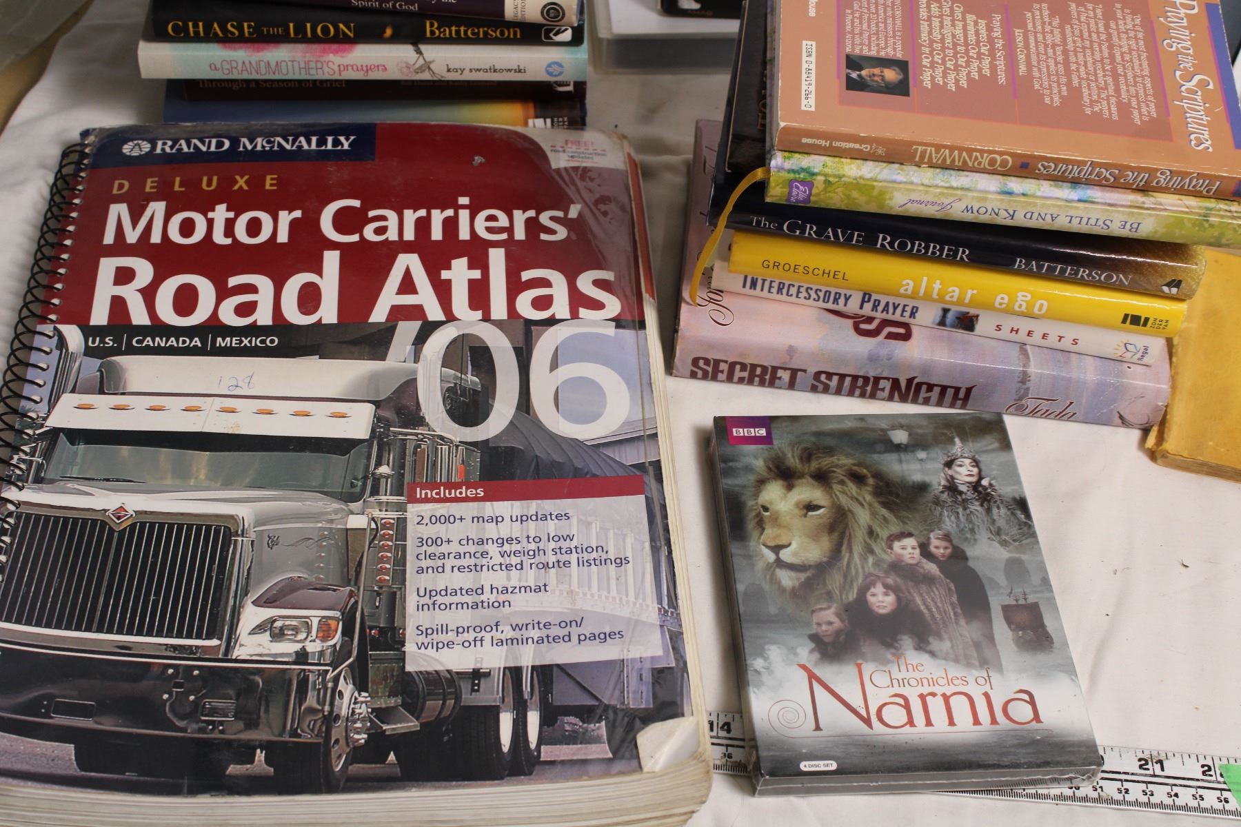 Lot of Books, science, atlas, narnia dvd sealed, misc movies