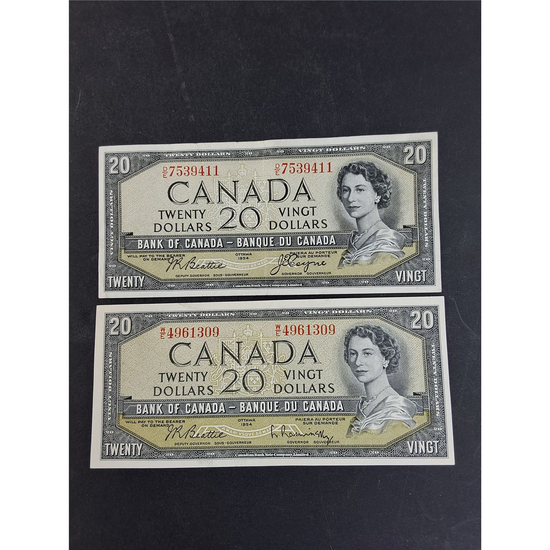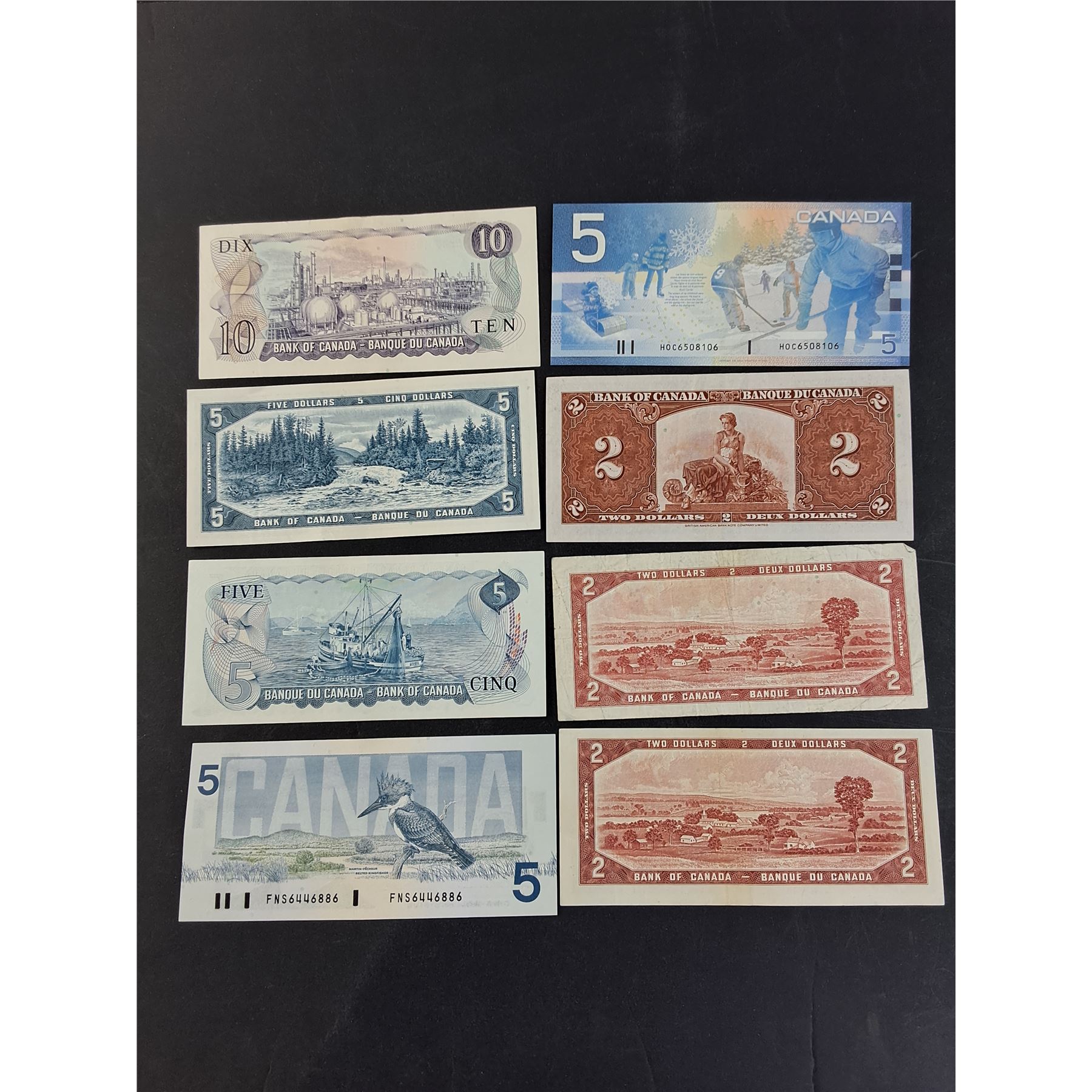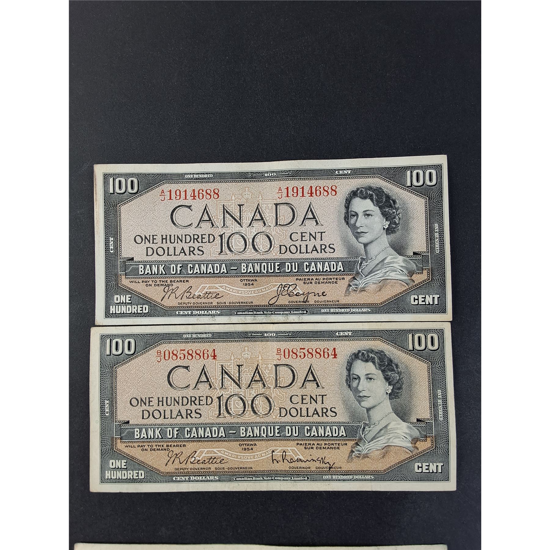 ^Lot of Canadaian Older Currency. Highlights are the Devil Face100, 50, and 20 Denominations. Face value 414 Dollars. All bills are in good shape.