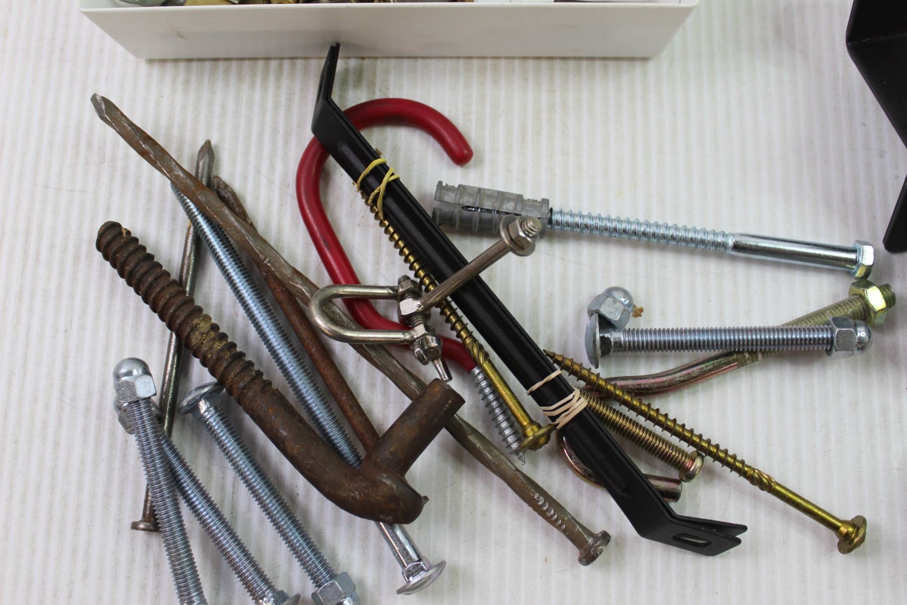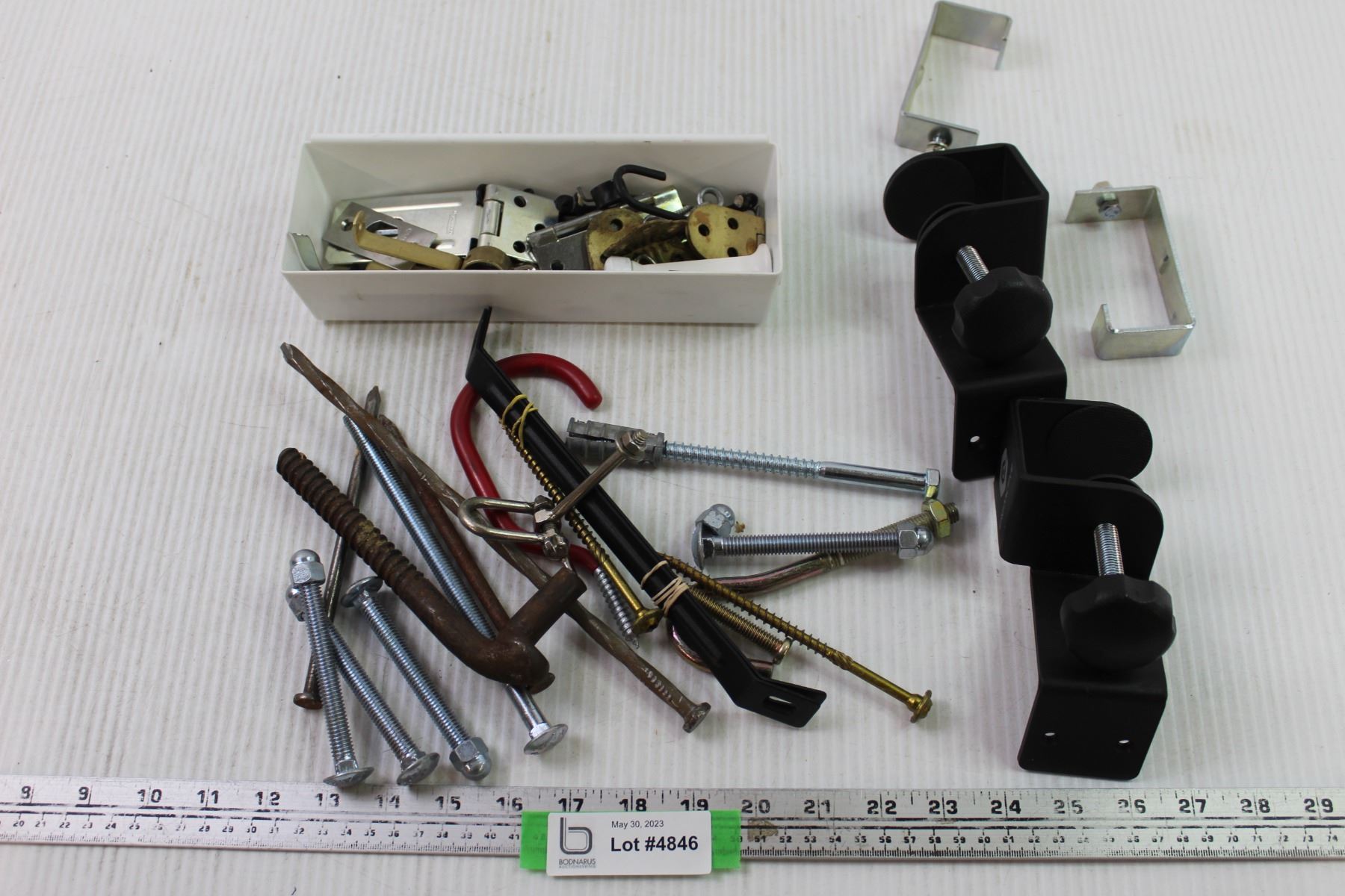 Lot of Hinges, Screws, Nails, Clamps + Misc.