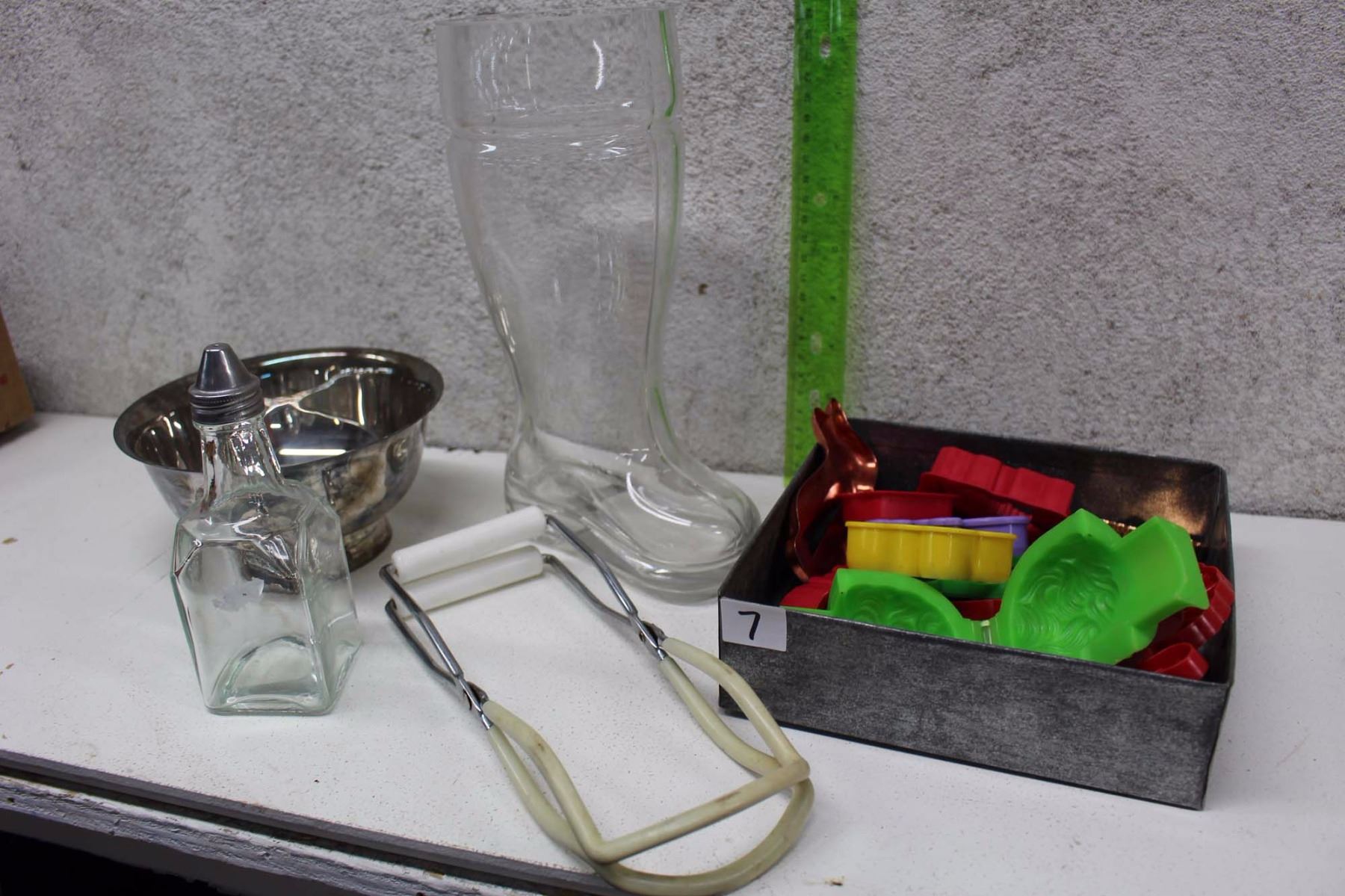 Lot of Misc (Cookie Cutters &/or PlayDoh Cutters, Glass Boot, Metal Bowl, etc;)