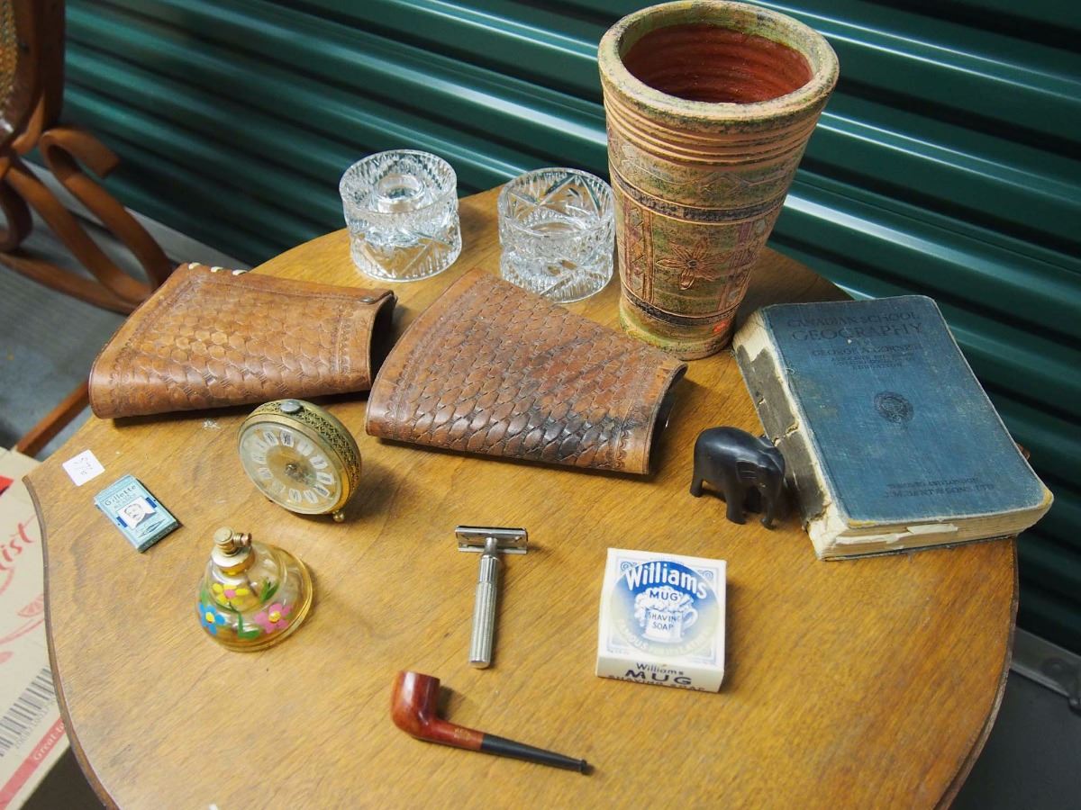 Lot of Misc (Real Briar Smoking Pipe, Boot Covers, Safety Razor, blades, Williams Mug Shaving Soap)