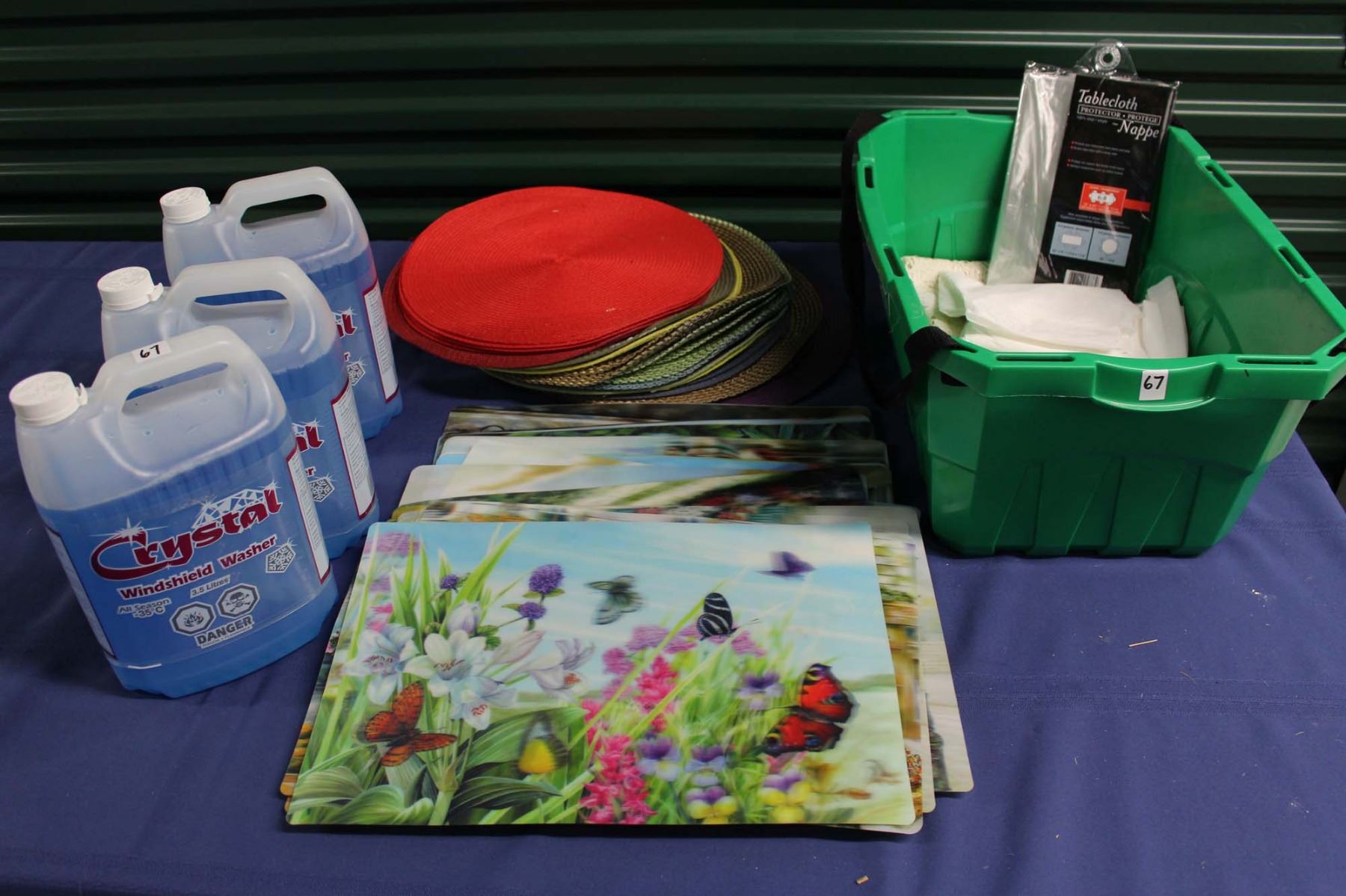 Lot of Misc (Windshield Washer Fluid, Place Mats, Table Protectors, Etc)
