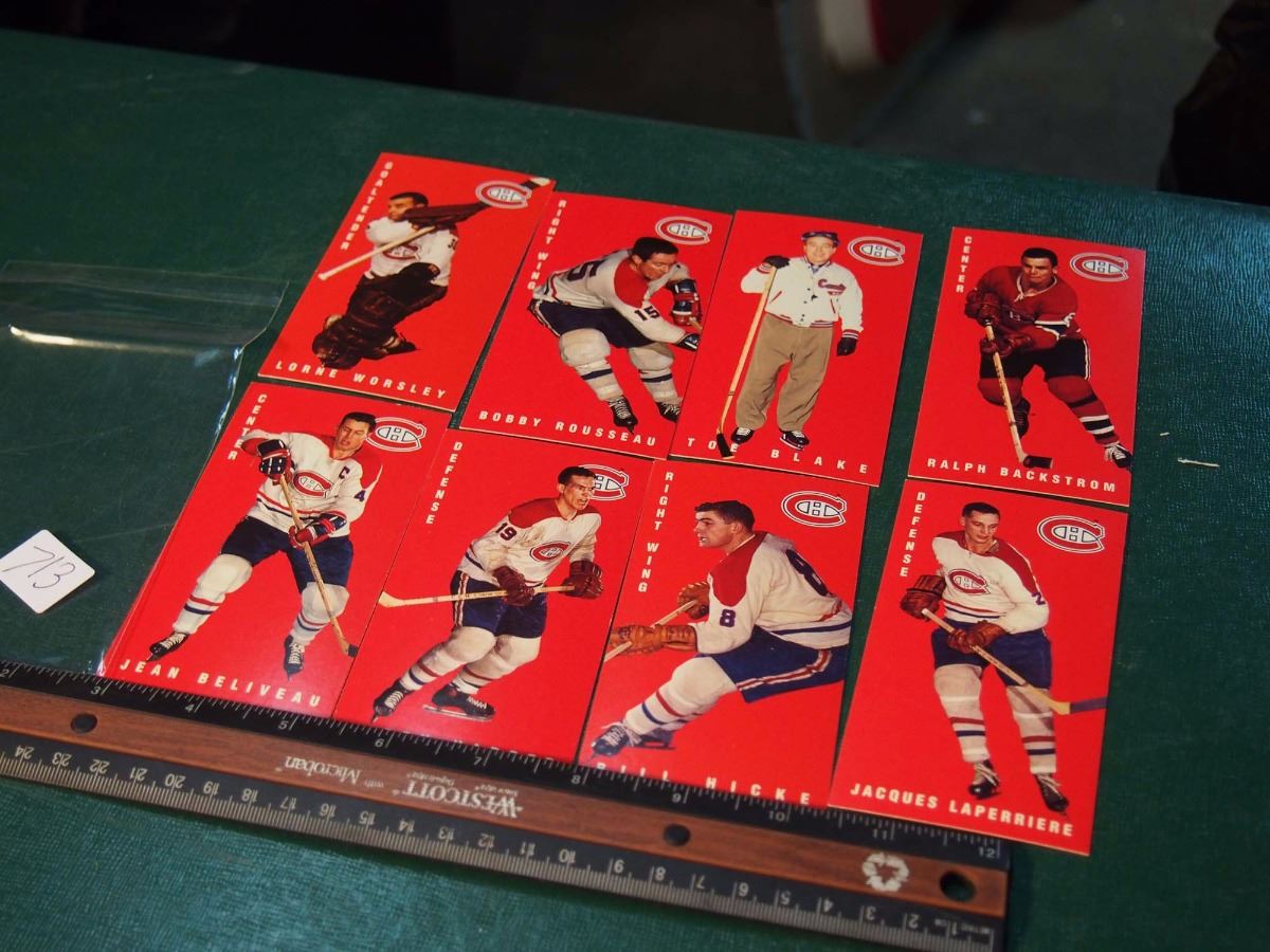 Lot of Montreal Canadiens 1964-65 Parkhurst Tallboys Re-print Hockey Cards (8) (Beliveau, Worsley)