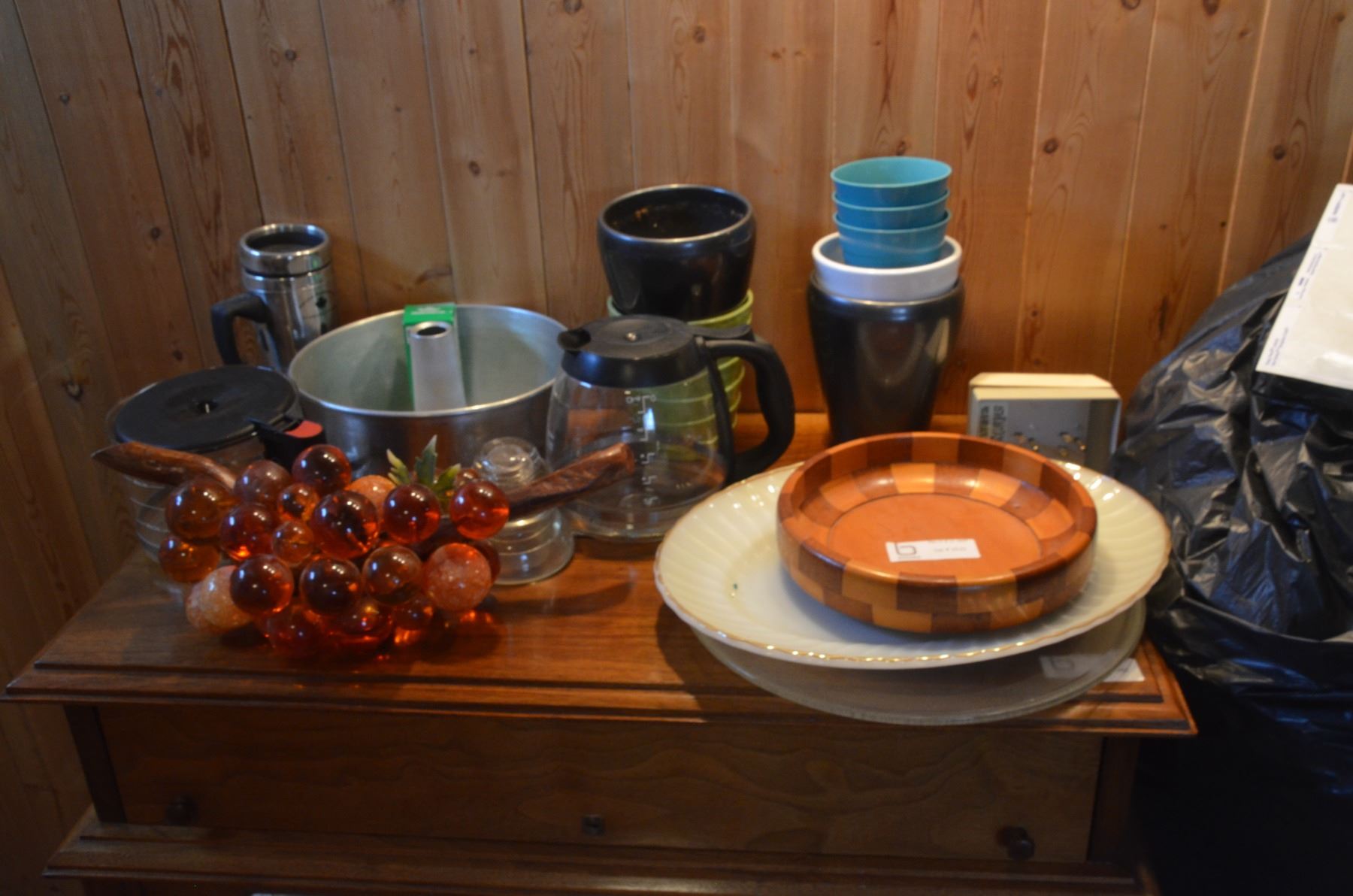 Lot of Pots, Coffee Pots, Platter, Microwave Plate, Misc.