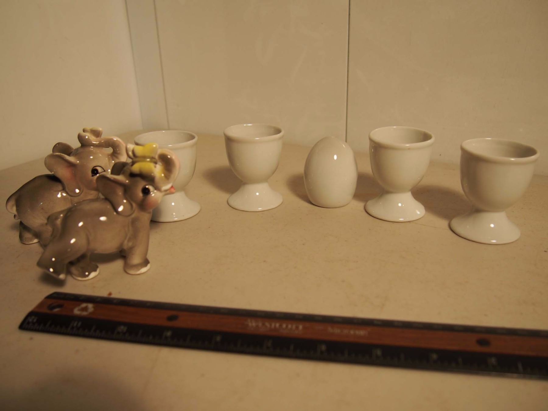 Lot of Small Egg Cups With Elephant Salt & Pepper