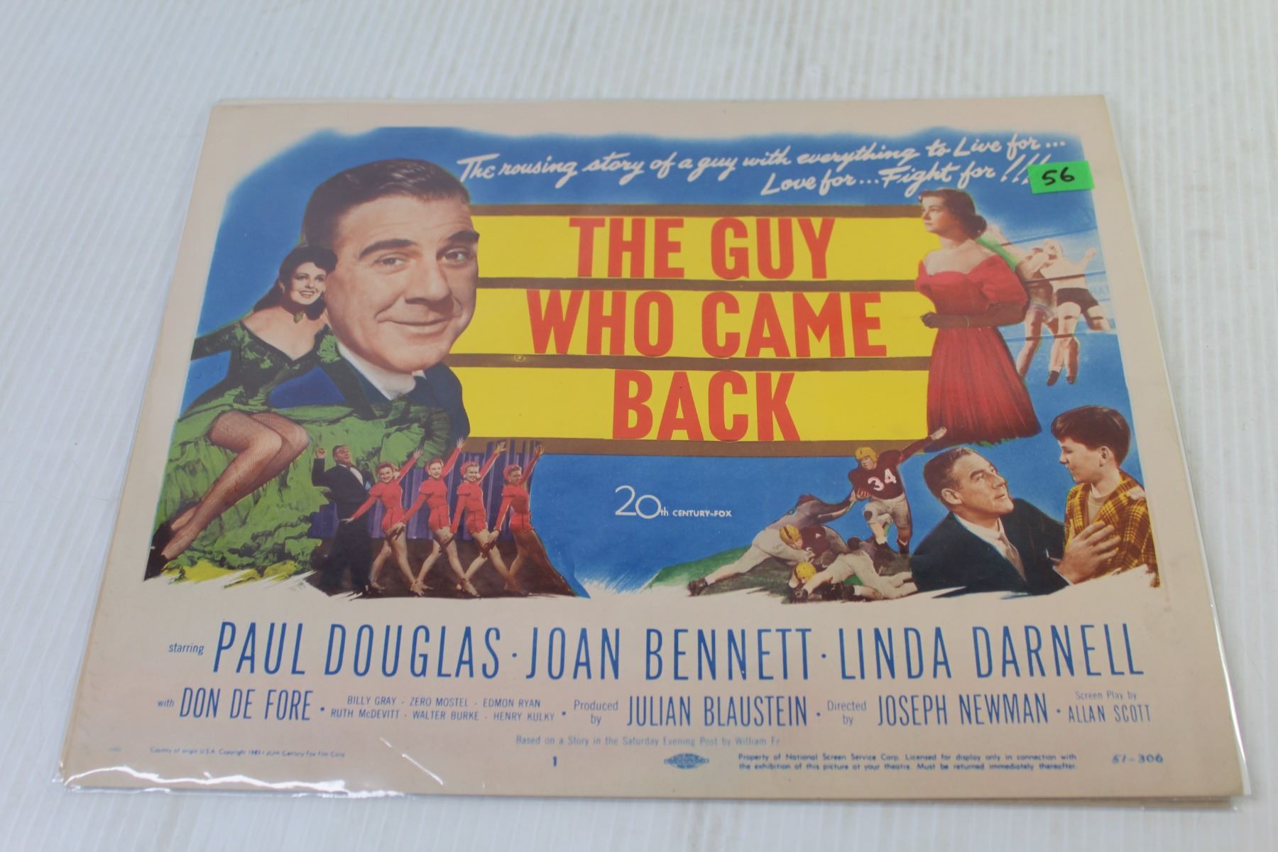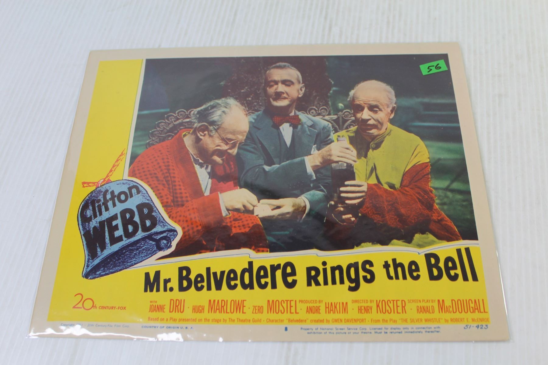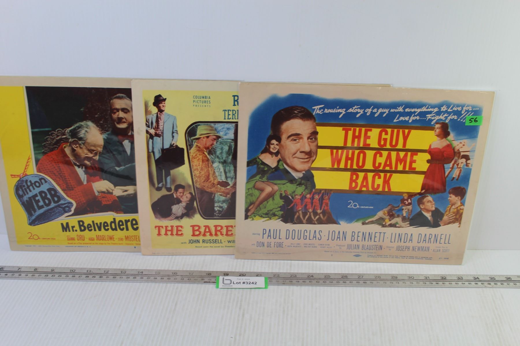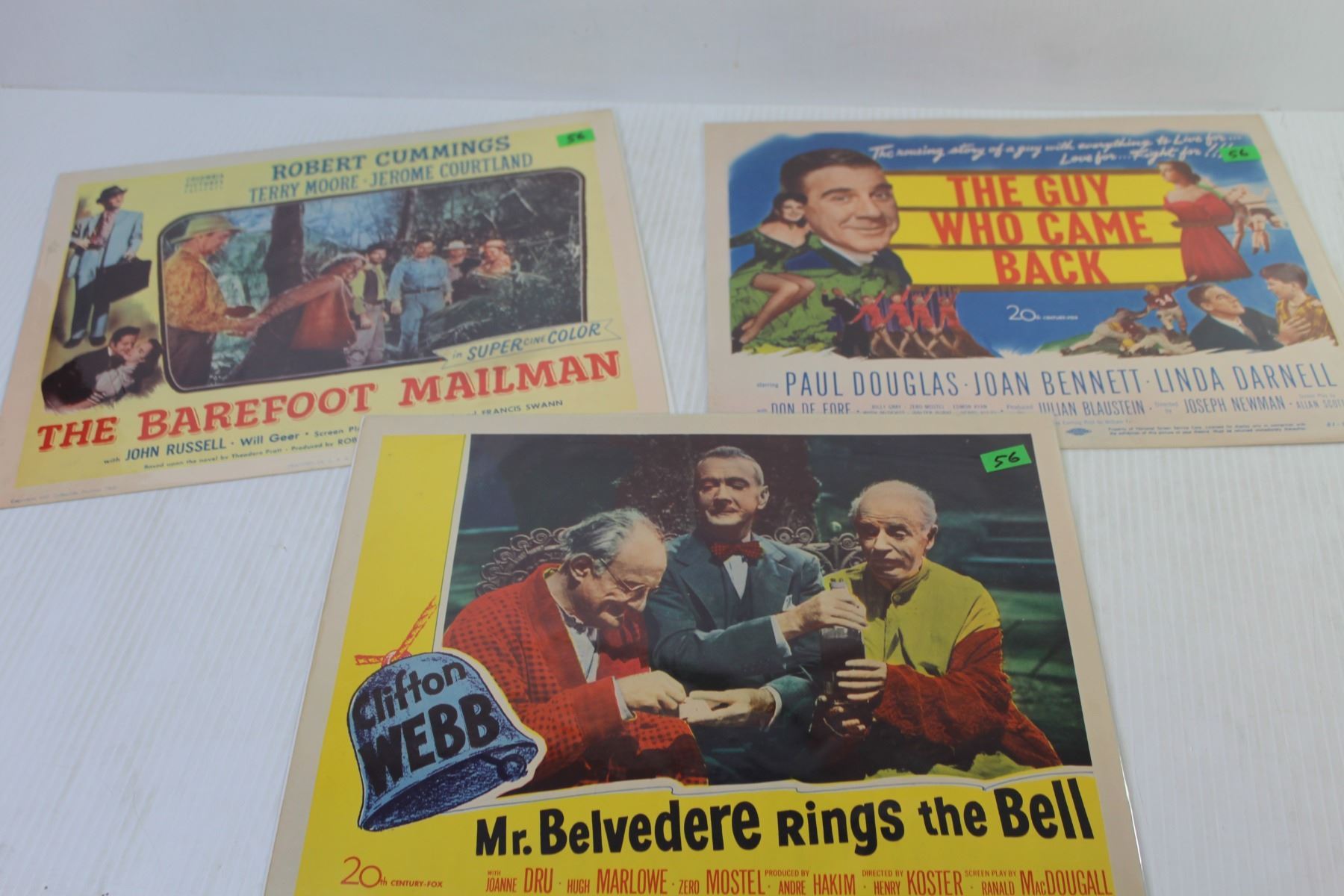 Lot of Three Vintage Lobby Cards From 1951 "The Barefoot Mailman" Starring Robert cummings - "Mister Belvedere Rings The Bell" Starring Zero Mostel & "The Guy Who Came Back (11" x 14" - In Good Overall Condition)
