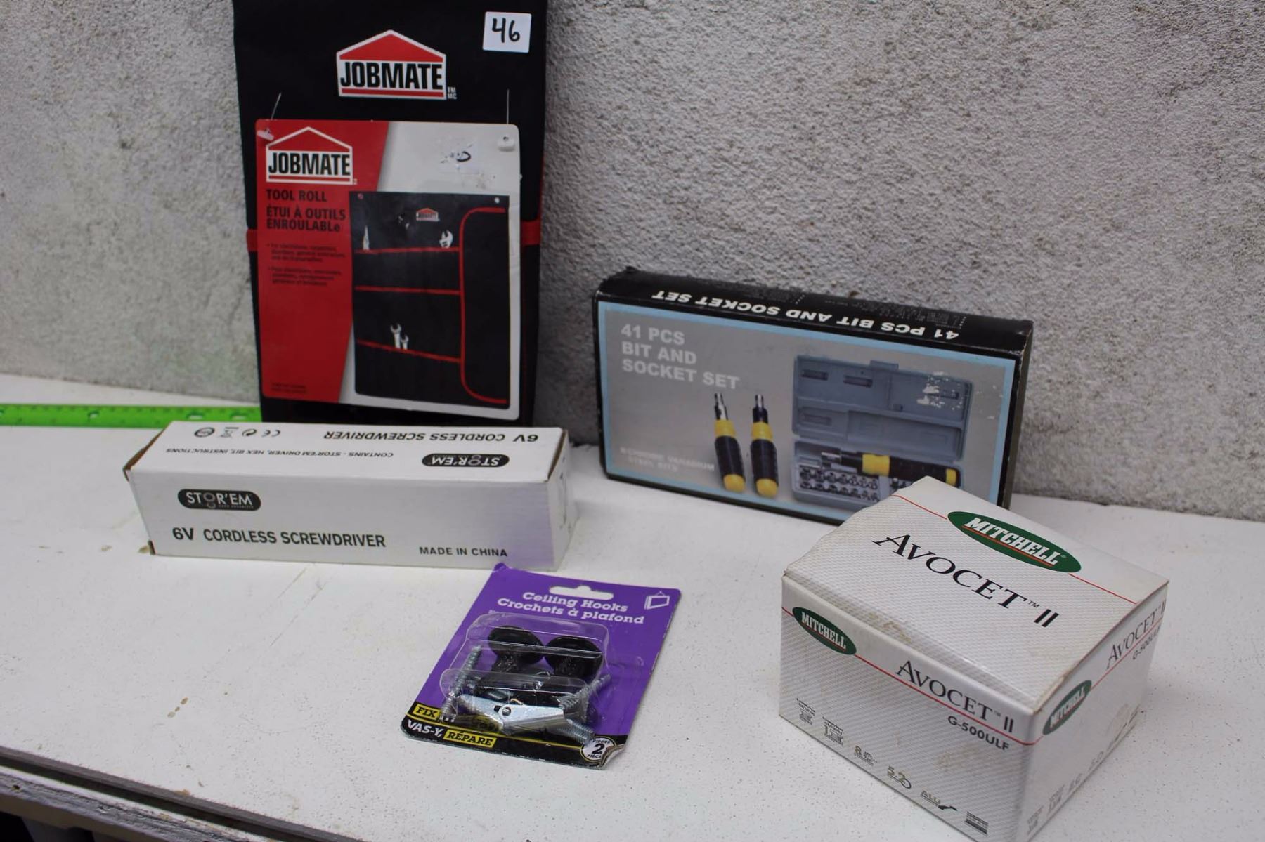 Lot of Tools (Tool Roll, 6V Cordless Screwdriver, etc;)