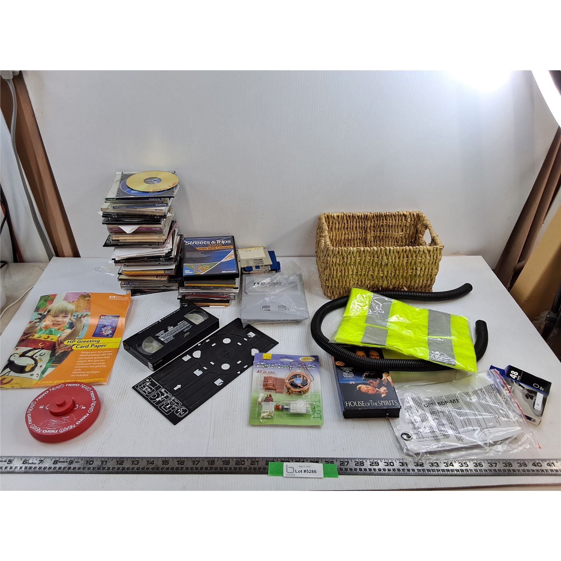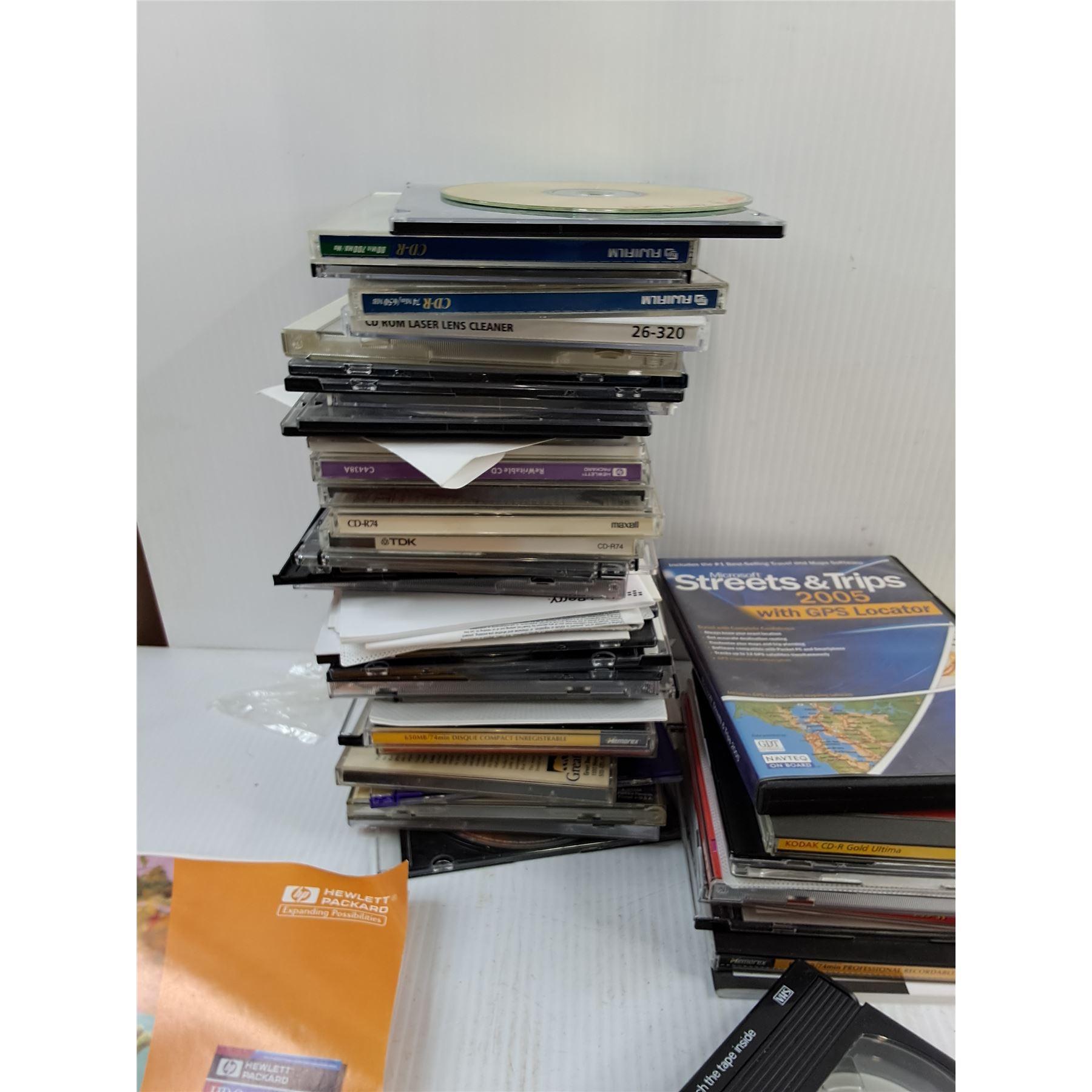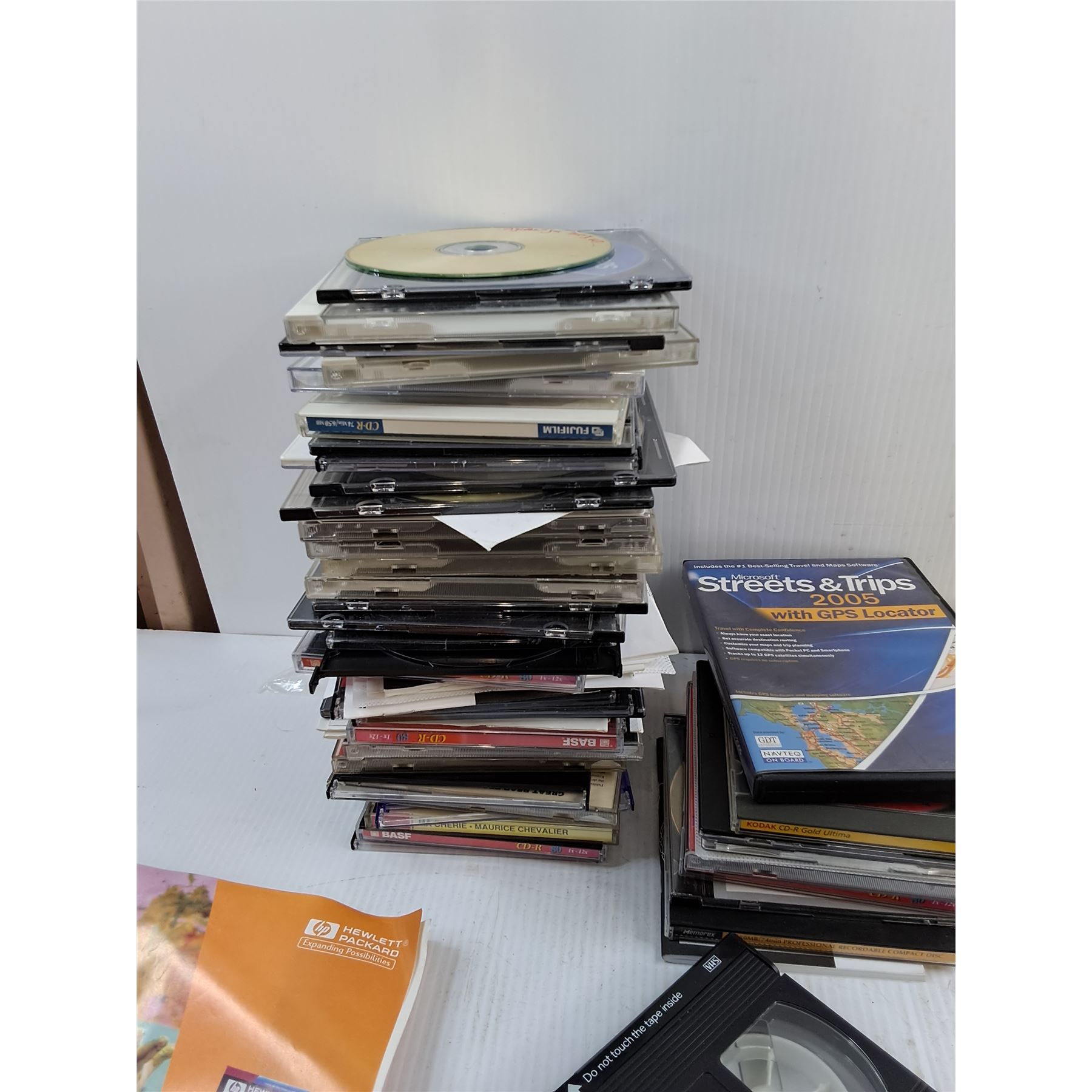 Lot of Various Cds, Empty Cases, Floppy Disks, (2) VHS Movies, Chipset Cooler Kit, Misc