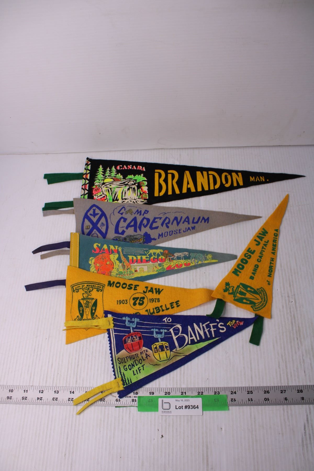 Lot of Vintage Travel Pennants (Banff, Moose Jaw, San Diego, Brandon)