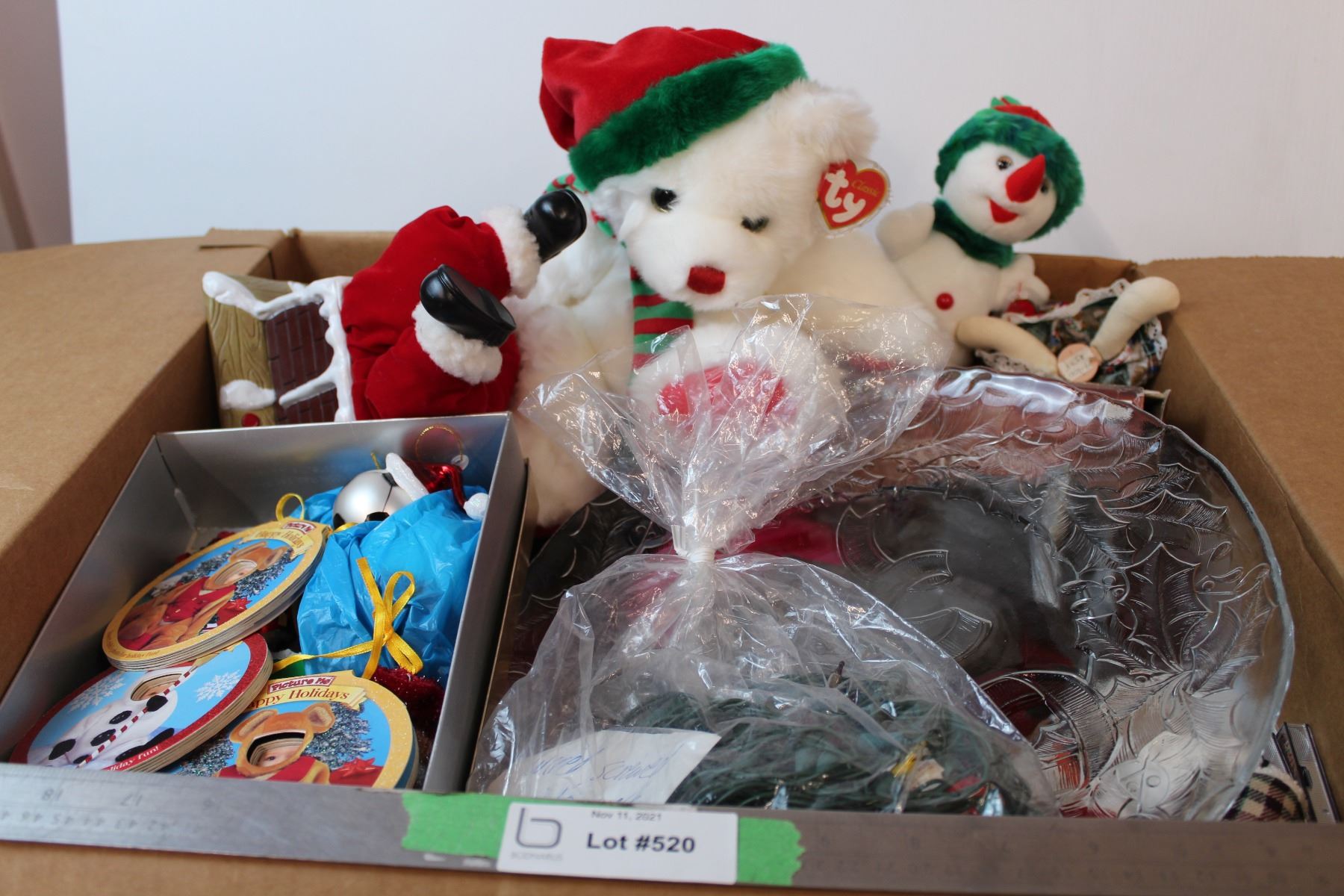 Lot of holiday decor: Ty Xmas Beanies, candle holders, trays